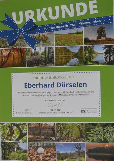 Fotowettbewerb Am 5. 10. 2021 bat ich euch um Hilfe. Worum ging es? Für ein Foto-Projekt "Wald, Wärme, Leben" (Ruhe, Sinnlichkeit) wollte ich ein paar Fotos einreichen. Das ganze war ausgeschrieben von der Zentralklinik Bad Berka zur Ausschmückung einer neuen Intensivstation. Ich bat euch mir bei der Auswahl ein wenig zu helfen und so kristallisierten sich die sechs Fotos (Titelbild) heraus, die ich dann für den Wettbewerb einreichte. Es verging etwas über ein halbes Jahr bis ich wieder was...