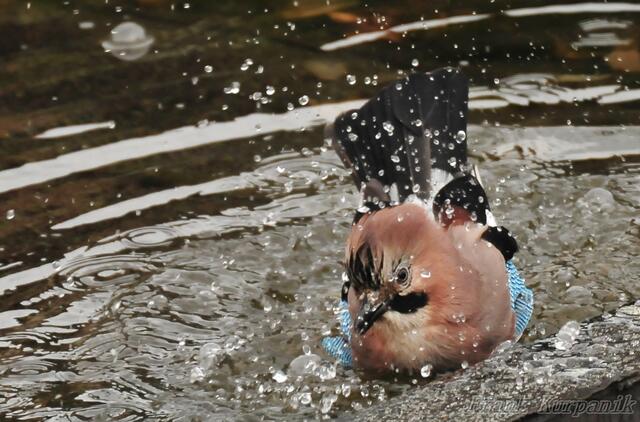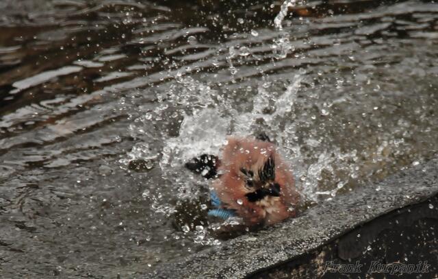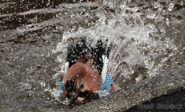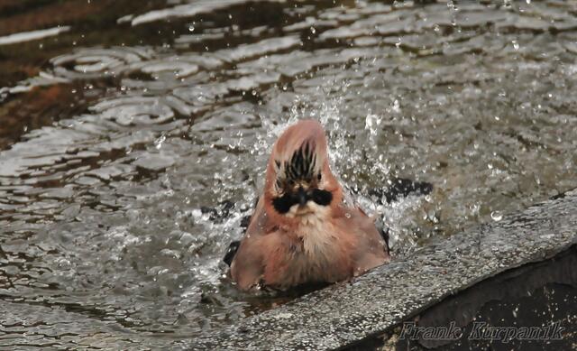 Im Garten des Fotografen kommen öfters auch Eichelhäher zu Besuch. Gelegentlich waren dort gleichzeitig sogar drei dieser Vögel zu sehen. Mit ihrem großen Schnabel holten sie sich dabei aus dem für Meisen vorgesehenen Futterhaus massenhaft Erdnusskern-Hälften. Damit die kleinen Meisen auch mal wieder zum Zuge kamen, half manchmal nur das Verscheuchen der Eichelhäher mit sehr deutlichen Worten! Außerhalb des Futterhauses gab es ja noch genügend weitere Futterstellen, z.B. mit Sonnenblumenkernen...