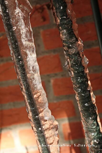 ...ja was wohl...? Ich schaue morgens aus dem Fenster und bestaune meine Eiszapfenparade an der Dachrinne. Ja das gibt´s doch garnicht...einige Eiszapfen wiedersetzen sich dem Eiszapfenstandart...gerade von oben nach unten. Oder kommt da jemand nachts und verbiegt die Eiszapfen...? ...ja aber wer macht denn sowas?