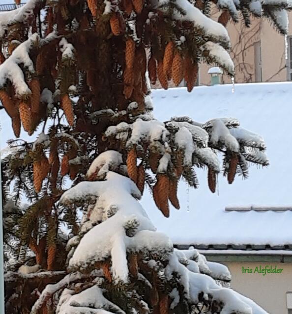 Heute morgen ist mir beim Schneeschieben ein großer Eiszapfen an der Dachrinne des Nachbarhauses aufgefallen. So ein Eiszapfen hat mich schon als Kind sehr fasziniert , natürlich mußte ich sie mir näher ansehen, habe sie oft vorsichtig abgebrochen, und auch bald gemerkt daß man den Zapfen, wie ein Eis am Stiel, langsam auflutschen konnte. Nun - heute hatte ich kein Verlangen nach solch einem Eis - ich habe zugesehen daß ich schnell mit dem Schneeschieben fertig wurde , und dann wieder in die...