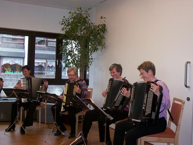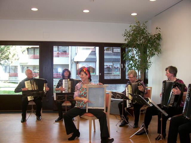 Mit einem bunten Melodienreigen erfreute das Akkordeon-Orchester unter der Leitung von Hanne Heim die Heimbewohner und deren Angehörige im Seniorenzentrum Sankt Hedwig in Königsbrunn. Das Ensemble gestaltete den Nachmittag mit einem Melodienprogramm aus Operetten, Musicals, Popp und bekannten Weltmelodien. Betreuungsmanagerin Renate Frisch moderierte in bewährter Weise durch den musikalischen Nachmittag. Unter lang anhaltendem Beifall wurde das Ensemble verabschiedet.