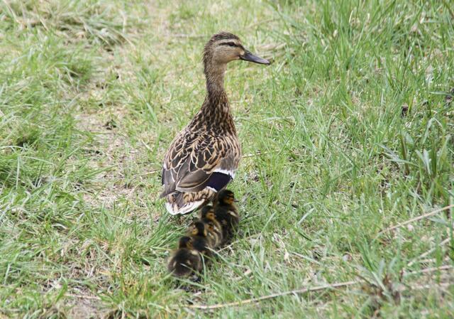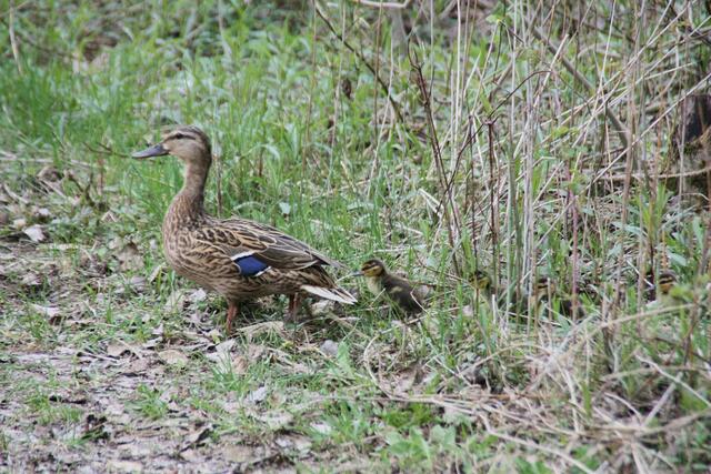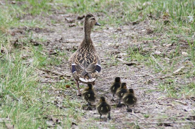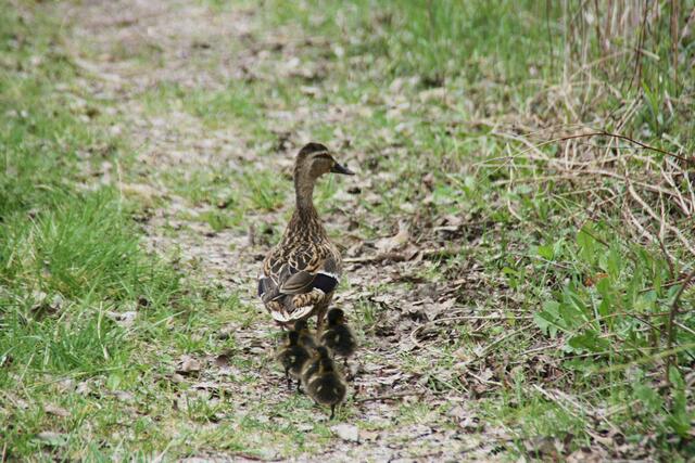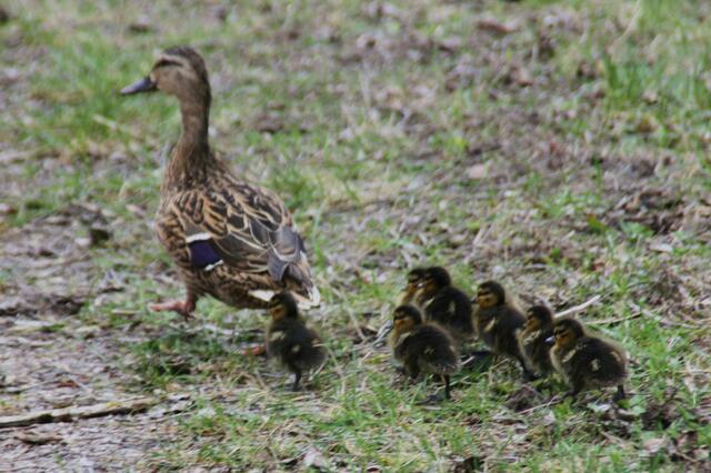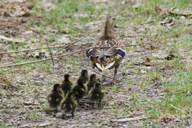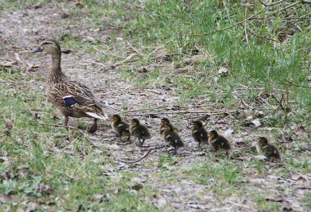 Eigentlich wollte ich am Ufer Libellen fotografieren. Als plötzlich aus dem Wald eine Entenweibchen mit einige Küken raus kam, ließ ich von den Libellen ab und fotografierte das andere Geschehen. Die Entenmutter war mit ihren Küken in Richtung Weiher unterwegs. Da kam aber aus dem Wald ein Piepsen. Die Ente entschied sich zurück zu gehen, den eines der Küken war noch im Wald. Also marschierten sie allesamt wieder in das Gebüsch und holten den vermissten ab. Es kamen insgesamt 7 niedliche kleine...