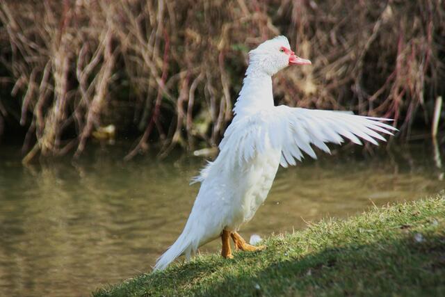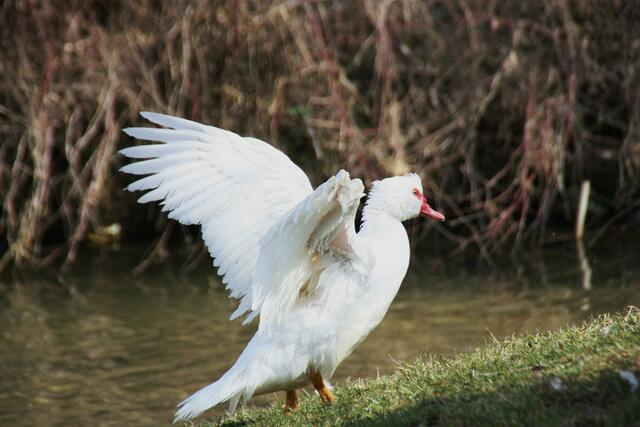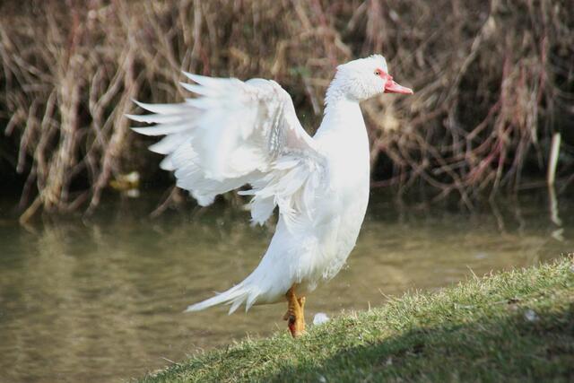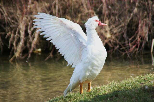 Die Moschusente zählt innerhalb der Familie der Entenvögel zur Gattung der Moschusenten. Hier konnte ich einige Bilder beim trocknen der Gefieder machen. Im Englischen wird die Moschusente ,,Muscovy Duck" genannt. Die Haustierform, also die domestizierte Form der Moschusente ist die Warzenente.