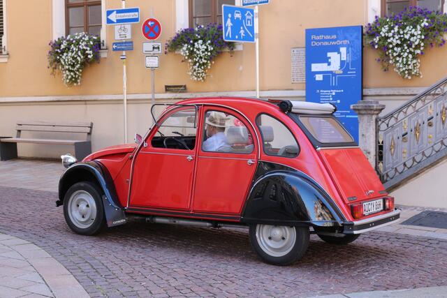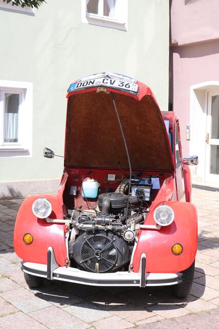 Hier habe ich bei der Jubiläumveranstaltung der 10. Oldtimertag in Donauwörth einige Enten (2 CV)  fotografiert. Der Citroën 2CV (französisch deux chevaux ‚zwei Pferde‘), in Deutschland und Österreich oft Ente und in der Schweiz allgemein Döschwo genannt, war ein populäres Modell des Automobilherstellers Citroën mit einem luftgekühlten Zweizylinder-Viertakt-Boxermotor und Frontantrieb. Citroën-Direktor Pierre-Jules Boulanger erteilte 1934 den Auftrag, einen minimalistischen Kleinwagen zu...