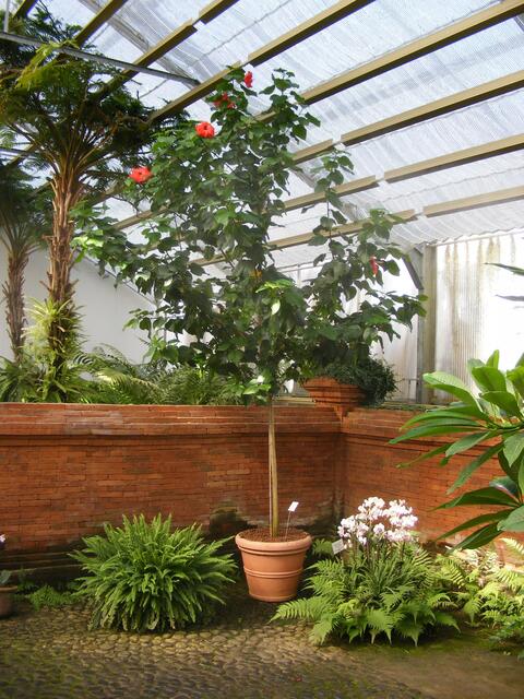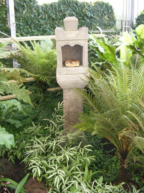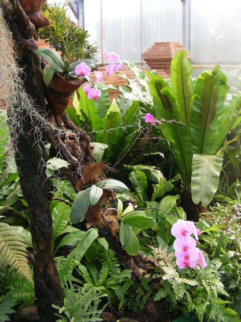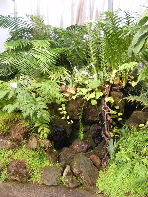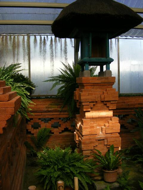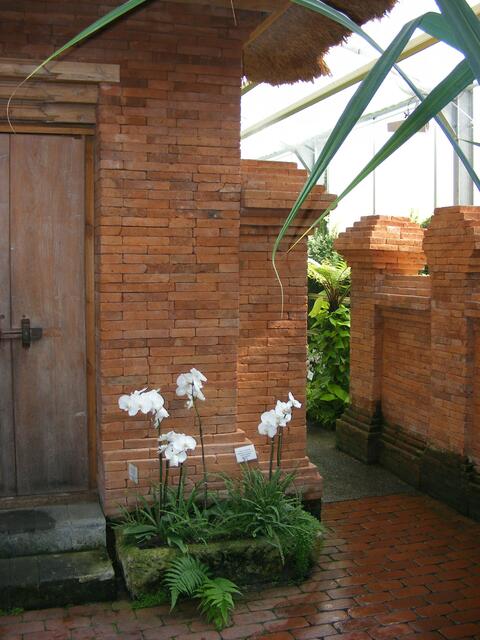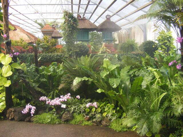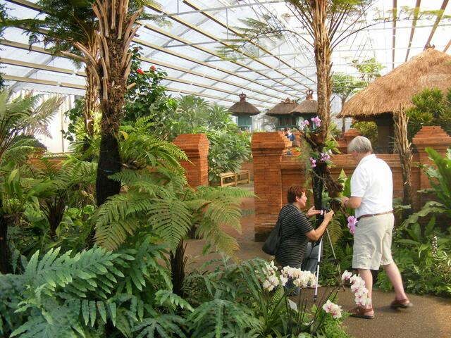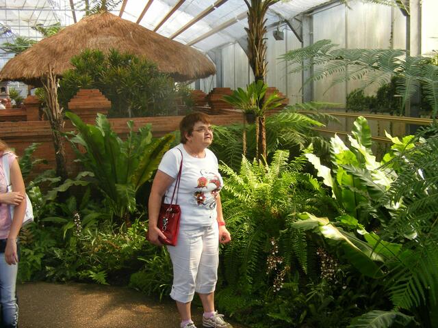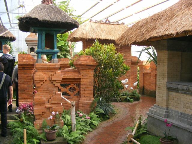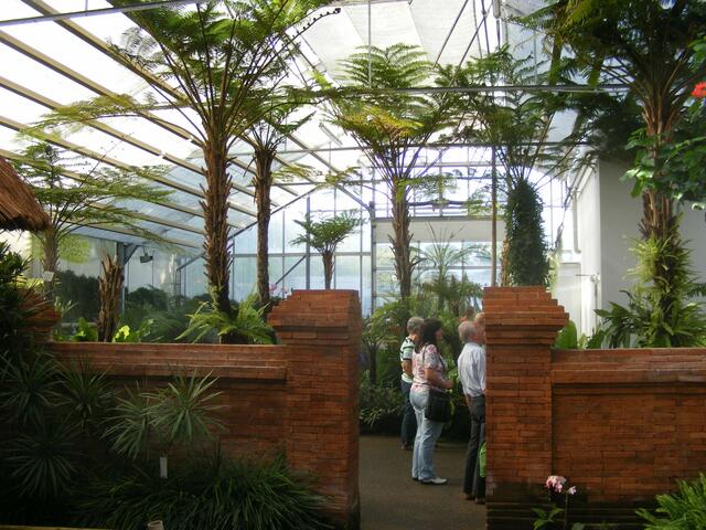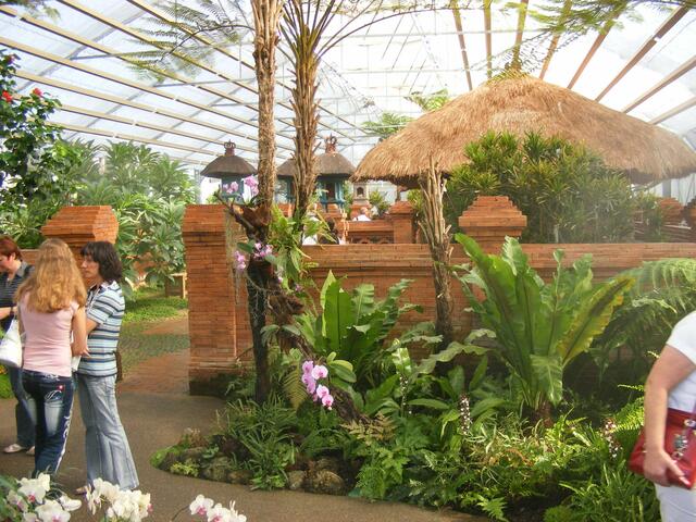 ...beim Balinesischen Garten handelt es sich um eine Gartenanlage in einem Gewächshaus. In unserem Klima wäre so eine Anlage im Freien nicht realisierbar. Ständig wird die Luft über Düsen mit feinsten Wassernebel feucht gehalten. Dadurch wird bei den hohen Temperaturen im Innern des Gebäudes ein subtropisches Klima erzeugt. Aber herrliche Blüten und Pflanzen machten den Ausflug in diese Anlage zu einer etwas schweißtreibenden Angelegenheit.