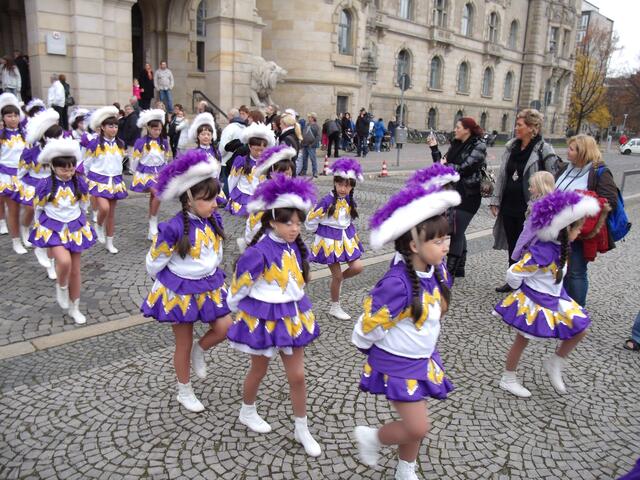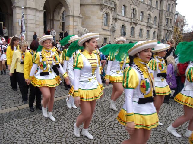 Der Trammplatz vor dem Neuen Rathaus erhielt heute Mittag immer mehr Farbtupfer. Pünktlich ;O) um 14.11 Uhr machte sich dann der lange farbenprächtige Karnevalswurm auf die 3km lange Zugstrecke durch die Innenstadt zum Opernplatz auf. Der Karnevalsumzug mit vielen Festwagen und Kapellen ist der Höhepunkt der fünften Jahreszeit in der Landeshauptstadt und so wurden die Marschierenden begeistert von den feiernden und vielfach verkleideten Zuschauern begrüßt. Überall schallte es Helau und man...