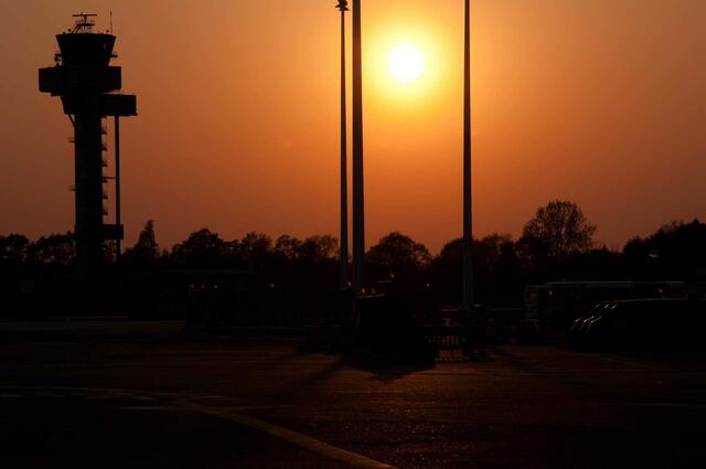 29. November 2017, kurz vor 17 Uhr: Foto aus dem Restaurant Skylight, 5. Etage, das immer, auch wegen seiner tollen Aussicht auf das Fluggelände, einen Besuch wert ist.