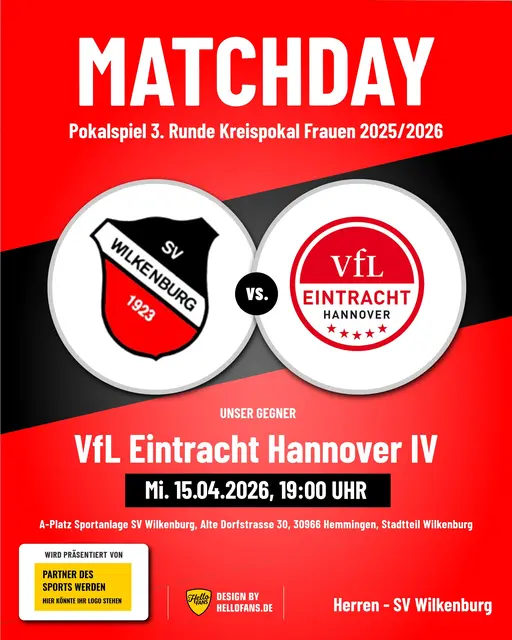 Bekanntlich haben die Fußball-Damen des SV Wilkenburg (Kreisklasse, Staffel 2) nach einem 2:1 gegen den FC Bennigsen und einem 3:2 beim SV Frielingen - jeweils nach Achtmeterschießen - die 3. Runde des diesjährigen Regionspokalwettbewerbes erreicht. Seit dem vergangenen Mittwoch stehen nun auch die Gegnerinnen in der 3. Runde fest. Die Wilkenburger Damen genießen Heimrecht und erwarten am Mittwoch, 15.04.2026, um 19.00 Uhr die derzeitigen Tabellenführerinnen des VfL Eintracht Hannover IV aus...