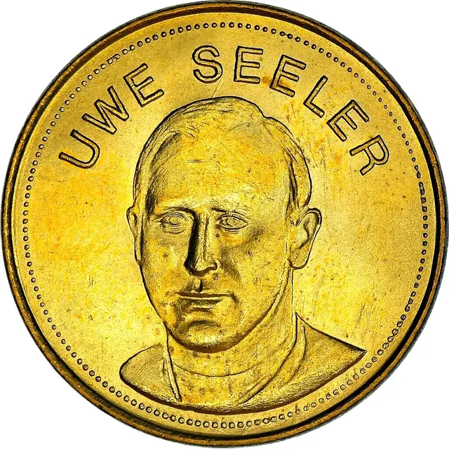 Wer kann sich daran noch erinnern? Wenn man damals bei SHELL getankt hatte, bekam man eine "Sammelmünze", also eigentlich keine Münze, sondern eine Medaille. Was nicht jeder weiß, es gab Sammelmünzen, die nur ganz selten geprägt  wurden, weil es Sammelpappen aus Königsborn von Bergmann in geringer Stückzahl gab. Es handelt sich um die Fußballspieler Klaus Gerwien und Herbert Wimmer.