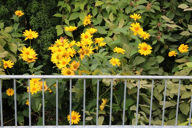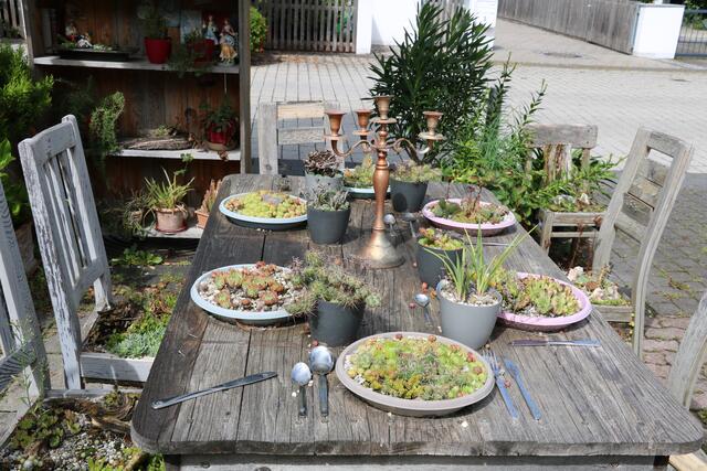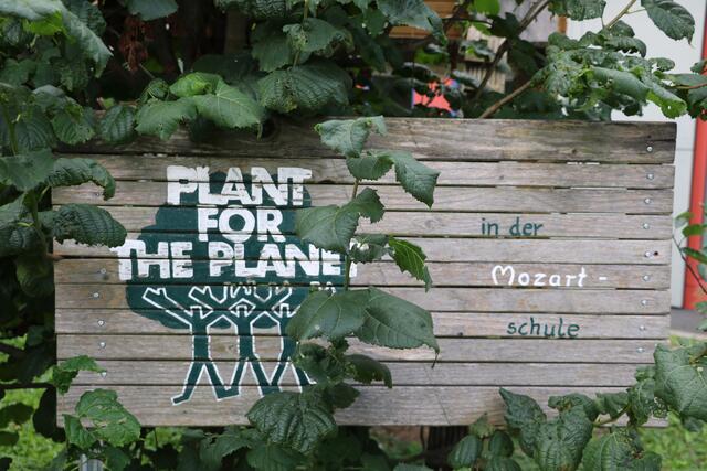 Die Natur sorgt für einen reichhaltig gedeckten Tisch, wenn der Mensch mit ihr sorgsam umgeht. Zu sehen ist das Arrangement im Vorhof der Mozartschule in Gersthofen.