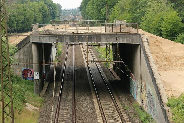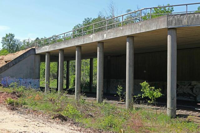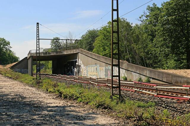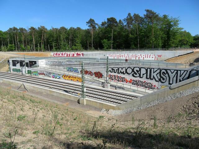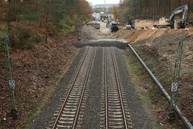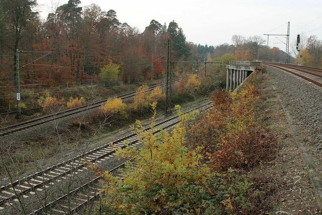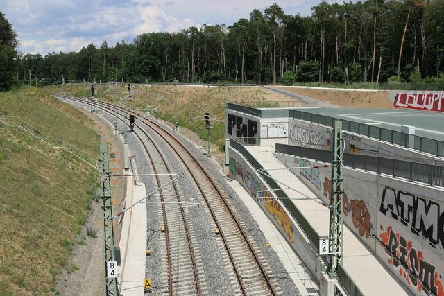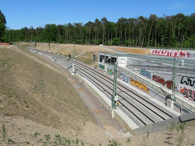 In der Nähe vom Frankfurter Waldstadion entsteht eine neue Bahnstrecke zum Flughafen. Diese dient als Ersatz für die bisherige Bahnstrecke zwischen Stadion und Flughafen, auf welcher am 25. Oktober 2019 die letzten Züge verkehrten. Die alte Strecke zweigt etwas später von der nach Westen führenden Bahnstrecke ab. Bei alter und neuer Verbindung zum Flughafen sorgen Brückenbauwerke dafür, dass der Abzweig kreuzungsfrei möglich ist. An der alten Strecke waren aber schon vor der Stillegung tote...