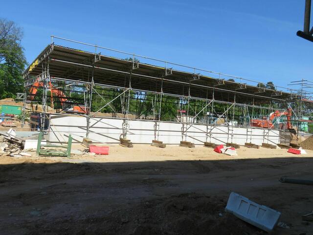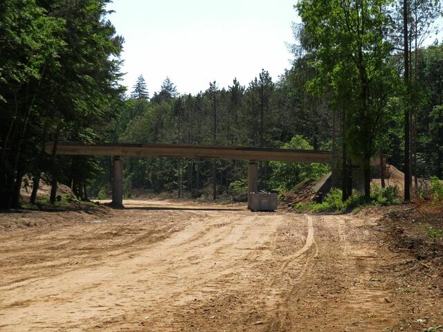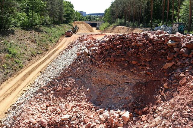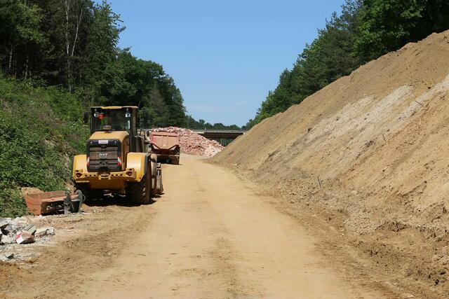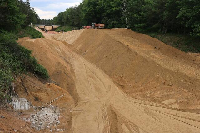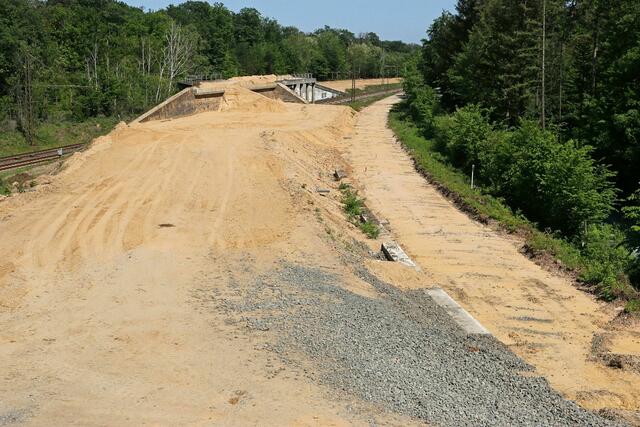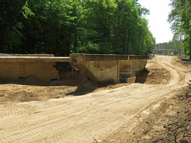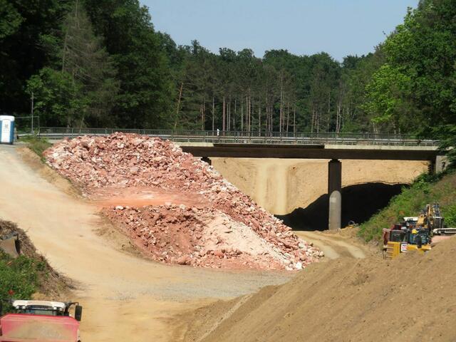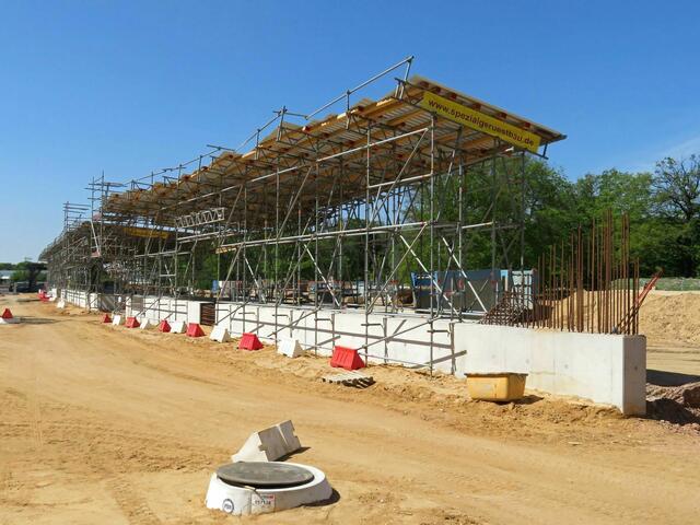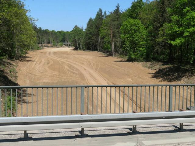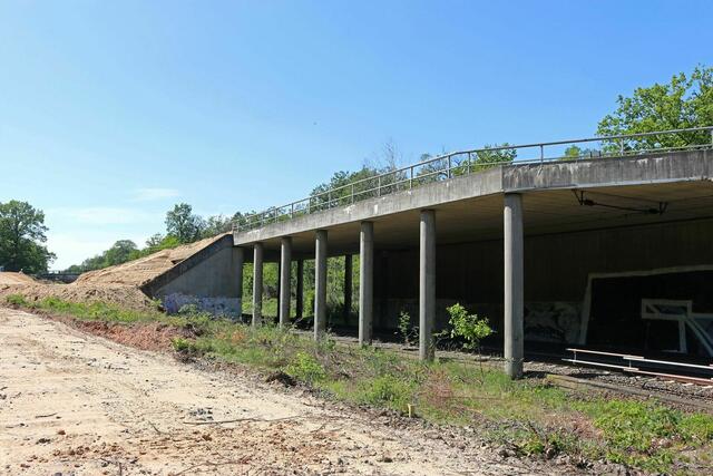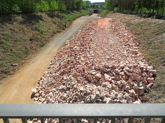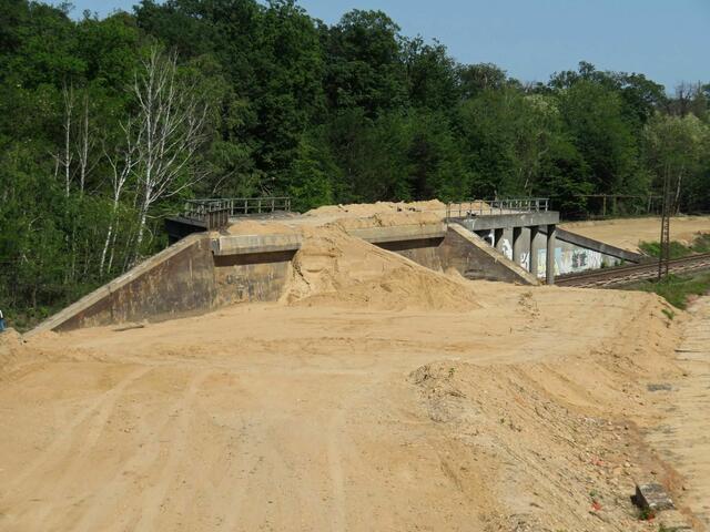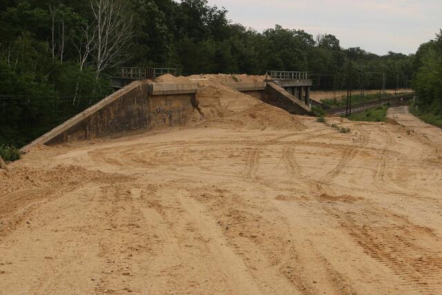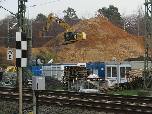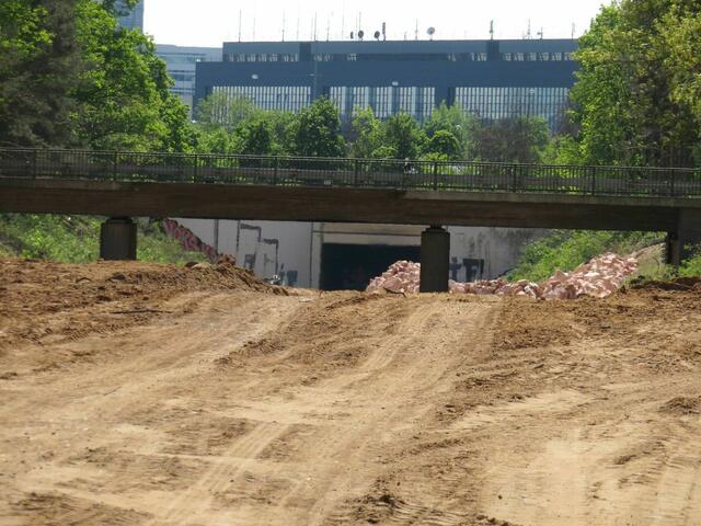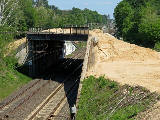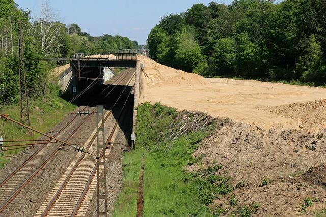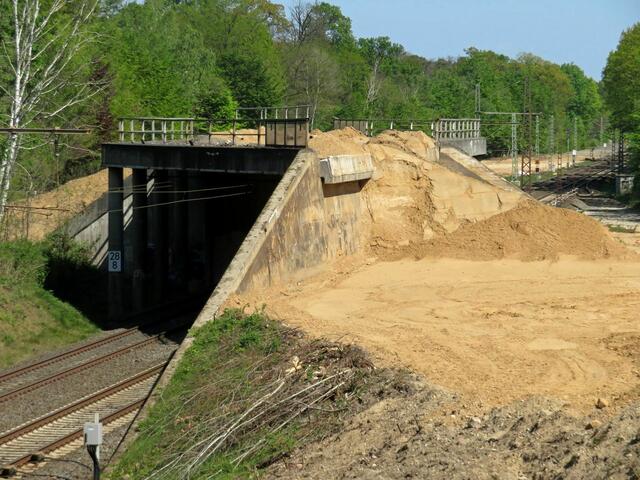 Am 16. Mai 2020 ergab sich eine zweite Gelegenheit für eine Fototour entlang der alten Bahntrasse zum Flughafen Frankfurt. Startpunkt war wieder die neue Bahnstation Gateway Gardens, welche die Ursache für die große Baumaßnahme war. Im Vergleich zum 25. April waren einige Fortschritte zu beobachten. Vor dem Tunnel, in dem die Bahn einst unter den Flughafen fuhr, wurde ein Teil der Bahntrasse schon mit Erde zugeschüttet. Außerdem ist der Haufen an rotem Sandstein vor der Schwanheimer Bahnstraße...