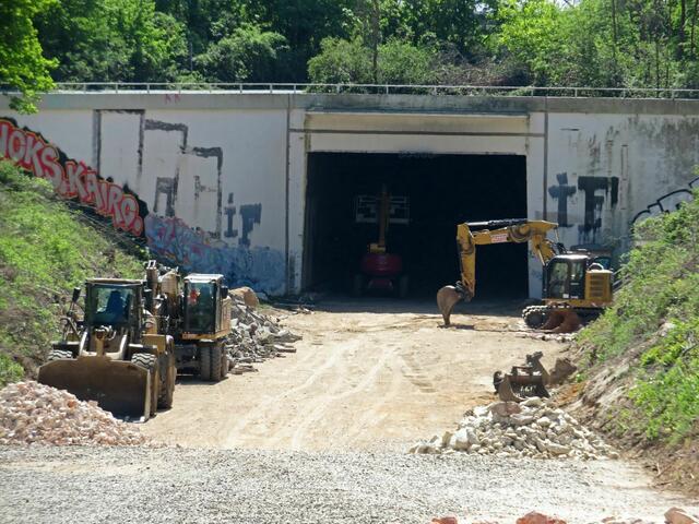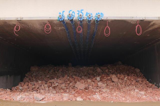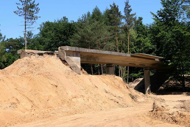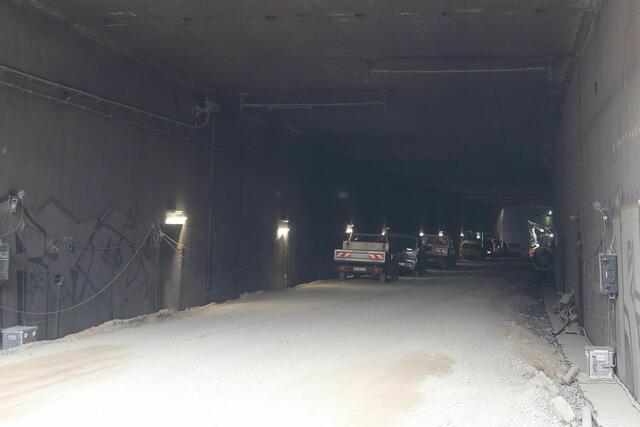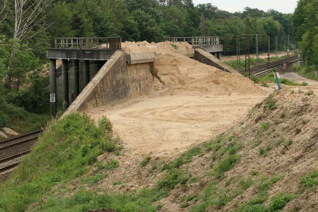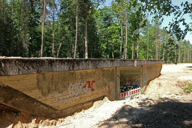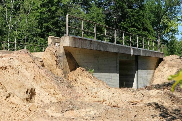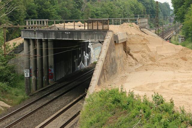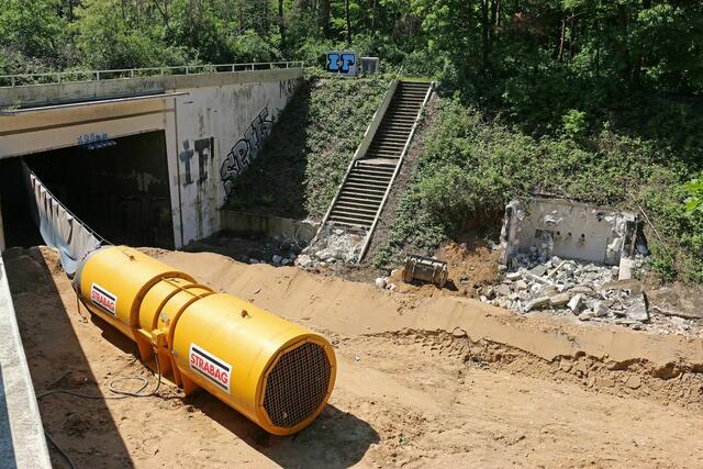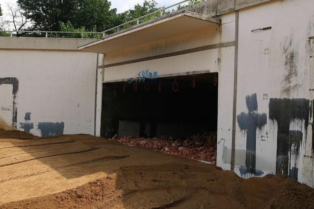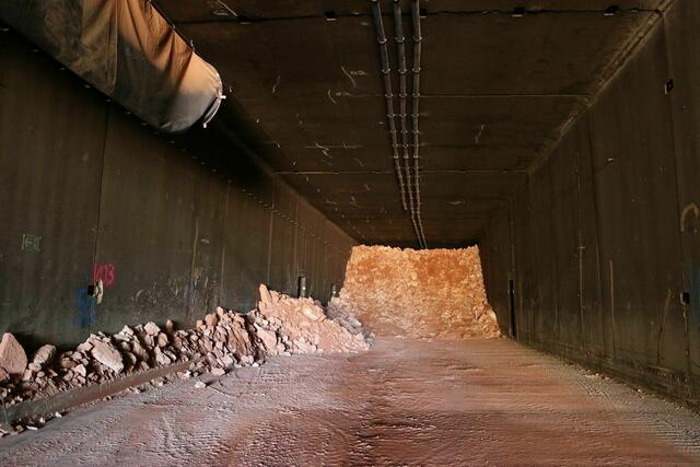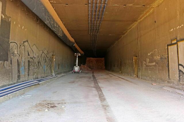 Der alte Tunnel zum Flughafen ist durch Verfüllung mit Sandstein blockiert.