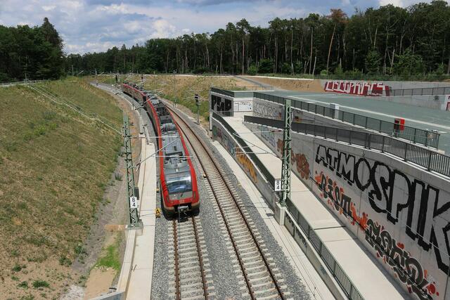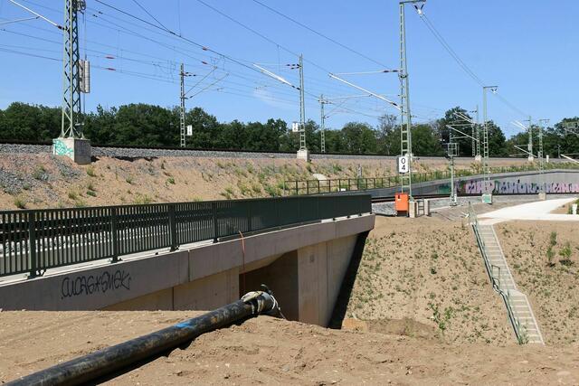 Bei der neuen und alten Flughafenbahn am 20. Juni 2020
