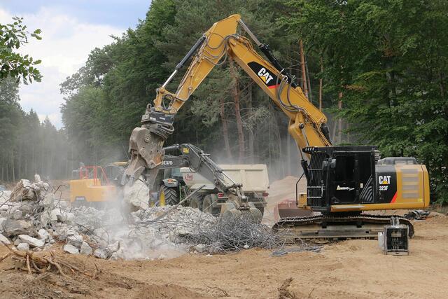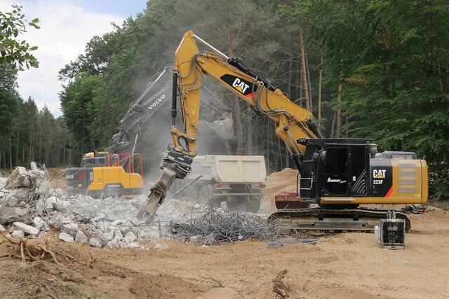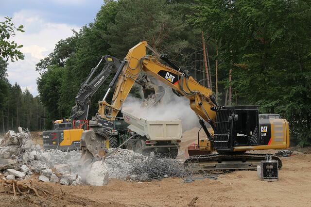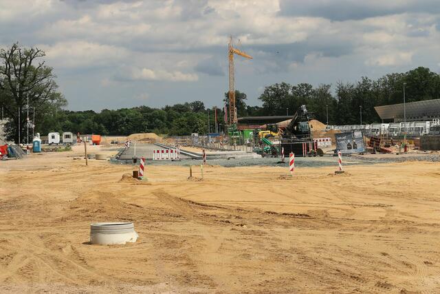 Zwei-Wege-Fahrzeug zwischen Stadion und Baustelle