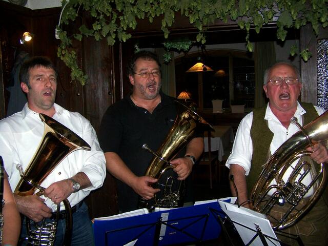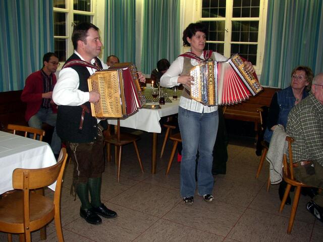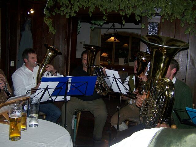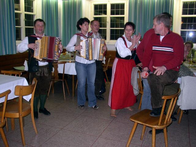 .....im Saal beim Gasthof Munding in Krumbachs Hürben. Die Dozenten so wie Teilnehmer sorgten für gute Stimmung, mit dabei auch aus Wiesenbach die Rucksack – Musikanten, so wie „Der Bertl“ Kreuzinger und der Holl Alfred. Bei Tanz und Musik mit viel Gesang und guter Laune verbrachten die Gäste einen wundervollen Abend...... Das Krumbach inzwischen zu einem kulturellen Mittelpunkt in Schwaben und darüber hinaus geworden ist, dass ist bekannt. Und so zog es schon letztes Jahr Erich Ronegg und sein...