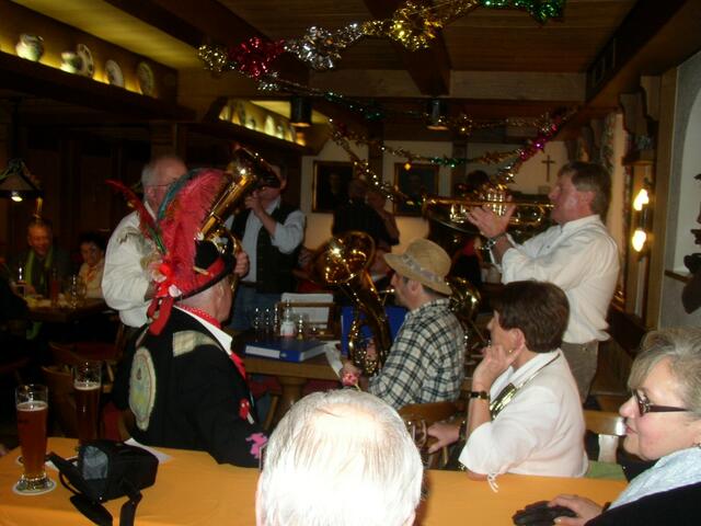 ......hieß es am Gumpigen Donnerstag in Krumbach, wozu die Volksmusikberatungsstelle des Bezirks Schwaben eingeladen hatte. Und es war die Stimmung vorprogrammiert, denn neben den Musikanten brachten auch all die Gäste durchwegs gute Laune mit. Und so wurde gespielt, gesungen, geschunkelt und geklatscht bis in die späte Nacht. Zur Tradition wurde in Krumbach, dass man an Weiberfasnacht, dem „Gumpigen Doschteg“, zum Diem geht. Denn dort findet die Faschingsausgabe des „Aufspiel’n beim Wirt“...