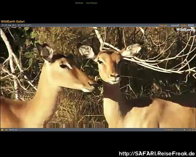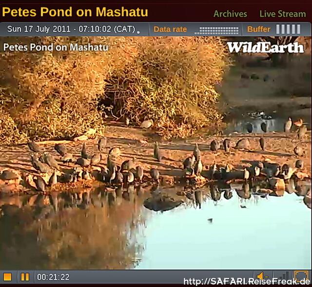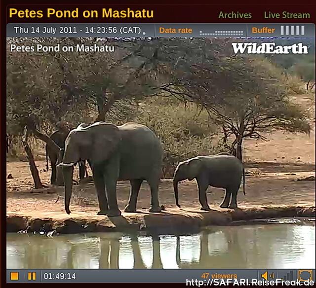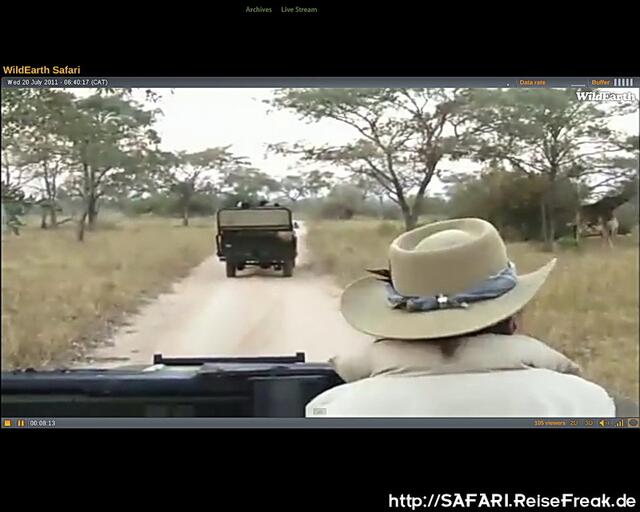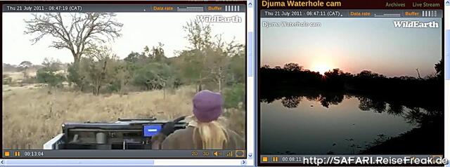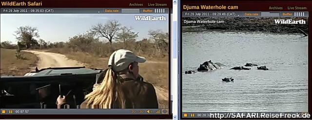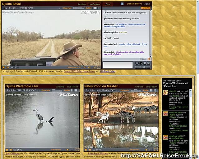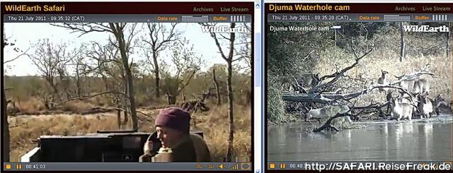 Wo trifft sich der Safari-Freak 2 x täglich und fährt (virtuell) in einem offenen Landrover durch die südafrikanische Savanne? http://Safari.ReiseFreak.de heißt die einprägsame Adresse, die man sich auch nach gehörigem Genuss von südafrikanischem Amarula-Likör (der mit dem Elefanten) noch einfach merken kann. In der Zwischenzeit musste vom ursprünglichen Betreiber der kostenlosen Internet-Seite eine Zwangspause eingelegt werden, weil sich keine oder wenig Einnahmen realisieren ließen, doch nun...
