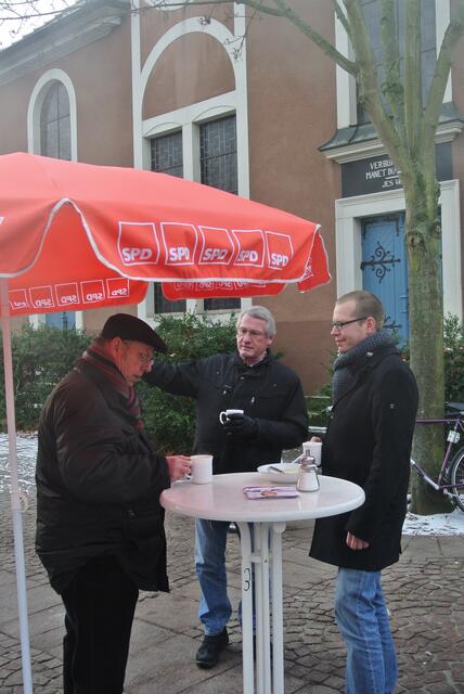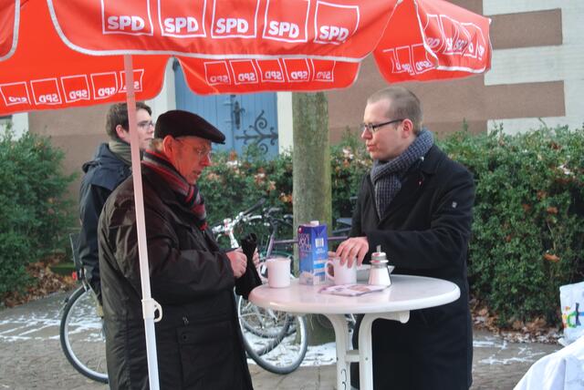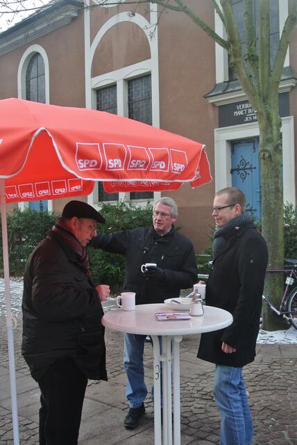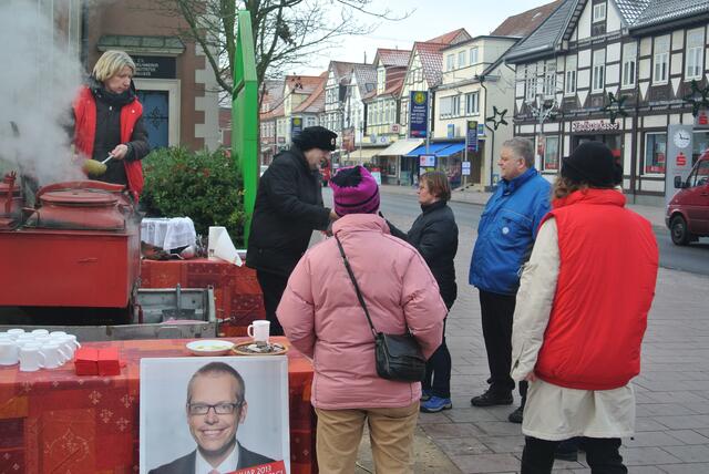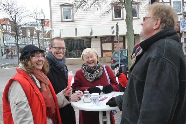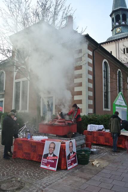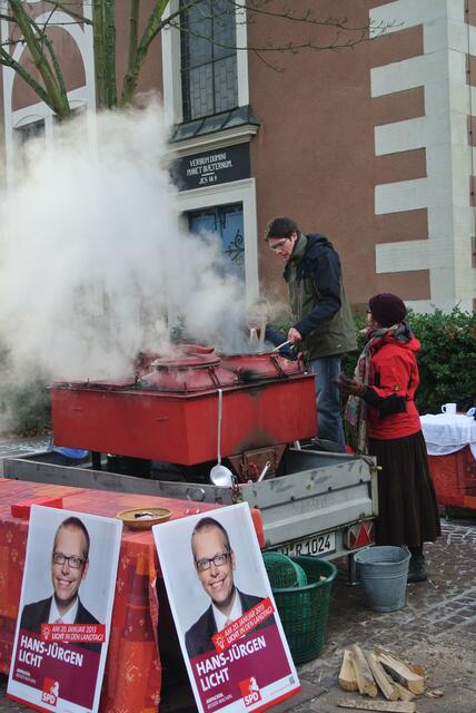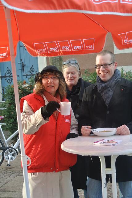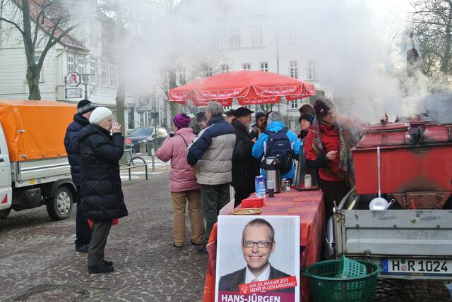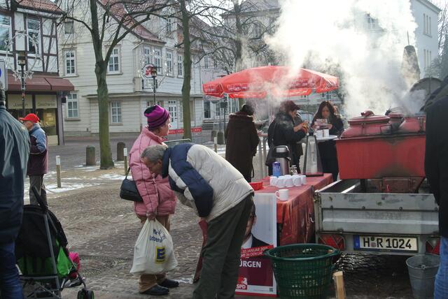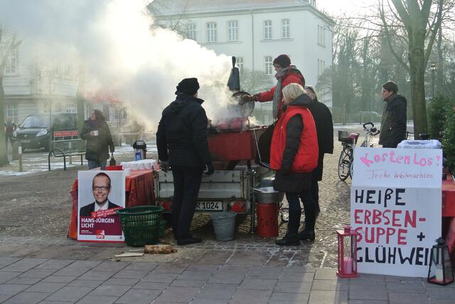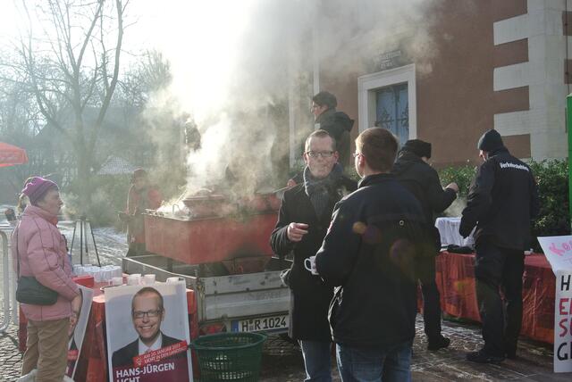 Die SPD Burgdorf hat am Samstag, den 8.12.2012, von 9-13 Uhr am Spittaplatz eine heiße Erbsensuppe ausgeschenkt. Bei Temperaturen um den Gefrierpunkt war die Aktion ein schöner Erfolg. Viele Passanten kamen, aßen eine Suppe oder tranken einen Glühwein. Bis die Vorräte alle waren. Dabei gab es reichlich Gelegenheit zum Austausch mit Hans-Jürgen Licht. Dabei gabe es viel Zuspruch und Ermunterung für den SPD-Landtagskandidaten , der die Suppenausgabe prominent unterstützte. Kommunale, Landes- und...