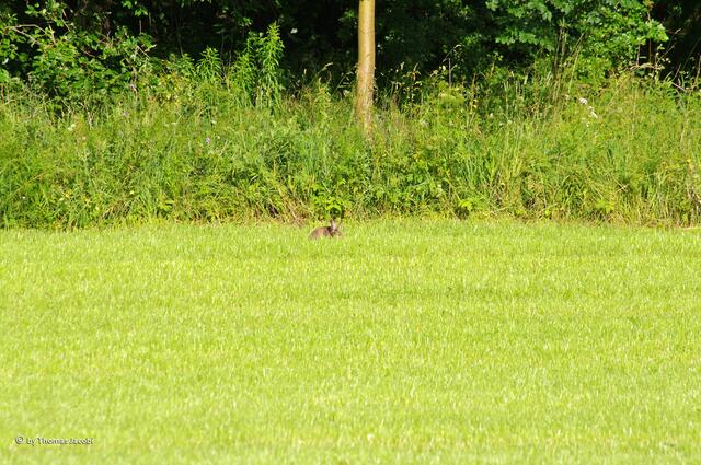 Auf einer meiner Fototouren erwischte ich dieses Langohr. Näher lies er mich leider nicht ran und behielt mich streng im Auge! Nach ein paar Aufnahmen bemerkte ich, daß dort zwei Hasen unterwegs waren. Scheint ein recht schmackhaftes Feld gewesen zu sein. :-)