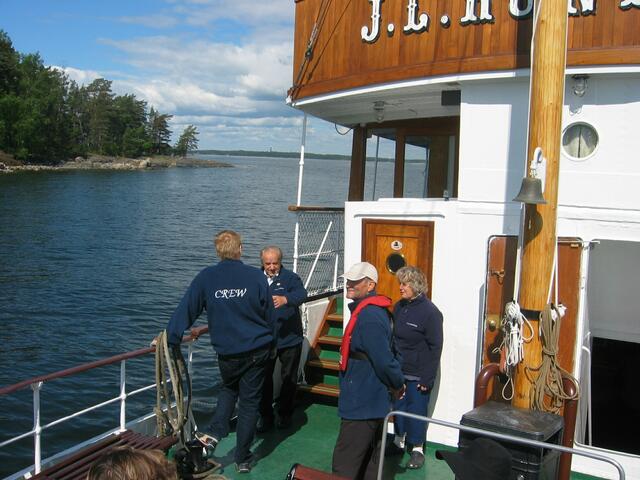Mit der Fähre sind wir vom Marktplatz/Südhafen hinüber zu der Landungsbrücke auf Iso Mustasaari. Der Ticketpreis ist in unserer 5Tageskarte enthalten. Wir sahen bei herrlichem Sonnenschein, wie sehr viele diese Gelegenheit genutzt haben und Picknick mit der ganzen Familie oder Freunde dort zu machen. Es war ein reger Betrieb, die Fähre fuhr dauernd, Fahrzeit ist etwa 15 Min. Dennoch kam mir die Insel nicht überladen vor. 4 Hochzeitsautos haben wir auch noch gesehen. Die eine...