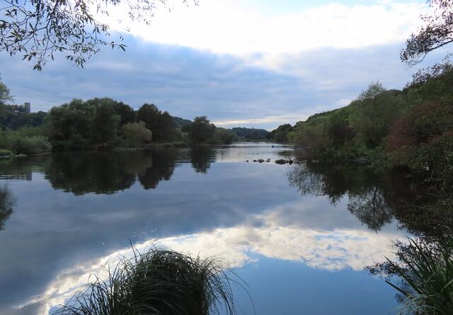 Noch zeigt sich der Oktober von seiner guten Seite, wenn sich auch die Sonne wenig blicken lässt. Schön ist es, trockenen Fußes über raschelnde Blätter zu gehen, das funkelnde, sich wiederspiegelnde Licht im Wasser zu beobachten und weitere Natuarschauspiele hautnah zu erleben ....... Ein paar Impressionen von meinem heutigen Spaziergang ....