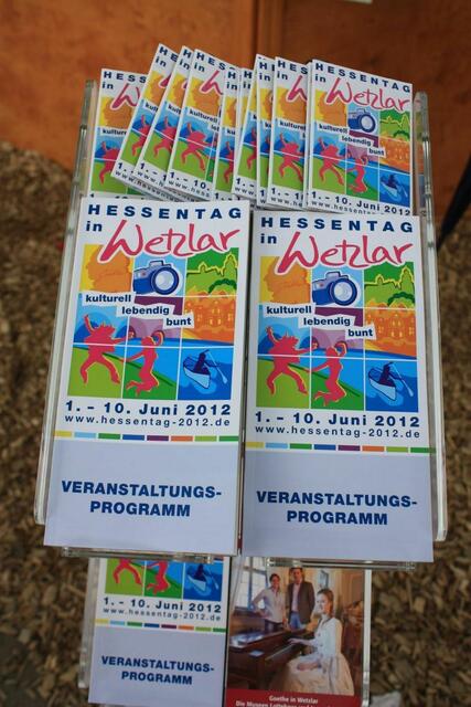Im Jahr 2012 fand der Hessentag in Wetzlar statt. Über die folgende Artikelübersicht lassen sich zahlreiche Bildergalerien von der Veranstaltung abrufen. Die Bildersammlung soll einen Eindruck von der Stadt während des Hessentags vermitteln und zeigt dabei auch unspektakuläre Motive. Besonders ausführlich werden die Angebote der Kirchen gezeigt. Noch einige Bemerkungen zum Hessentag 2012: Der Hessenabend fand am 28.4. um 20 Uhr in der Stadthalle statt und kostete neun Euro Eintritt. In...