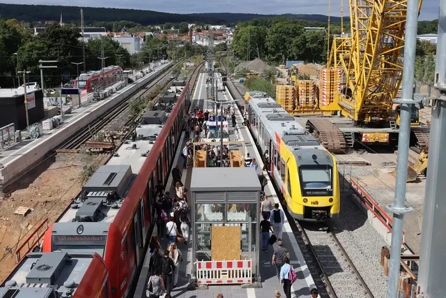 Wegen des Bahnhofsumbaus hält die S5 auf Gleis 2.