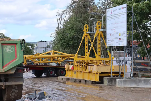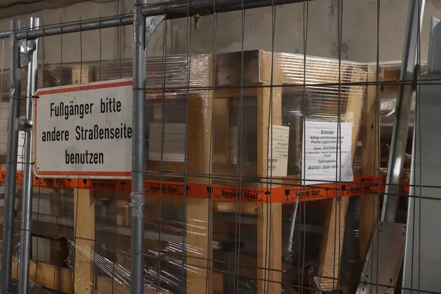 Da neue Bürogebäude war zwar eigentlich schon fertig - aber am Rande des Grundstücks fanden noch letzte Bauarbeiten statt. Die letzten Bauzäune standen an den Stellen, wo der Dornbach unter die Siemensstraße und die Justus-von-Liebig-Straße fließt. Hier fehlte noch immer ein Zaun, damit Passanten nicht versehentlich in den etwa zwei Meter tiefer fließenden Bach abstürzen. Der Zaun wurde erst Ende Mai angebracht. Vorher montierten die Arbeiter jedoch Absperrgitter auf der Südseite des Baches, wo...