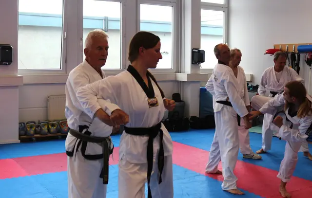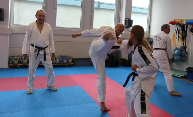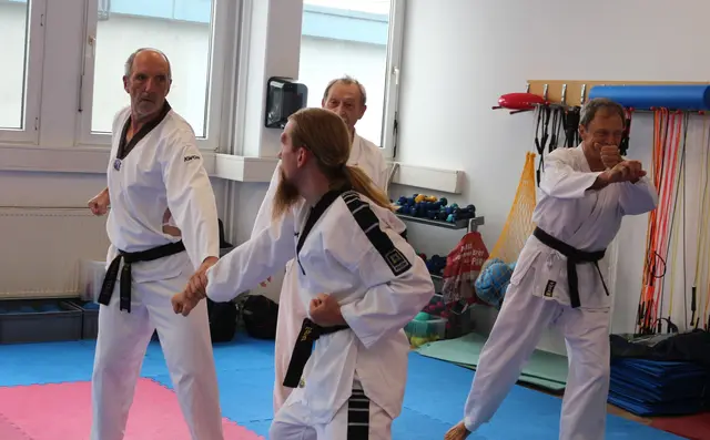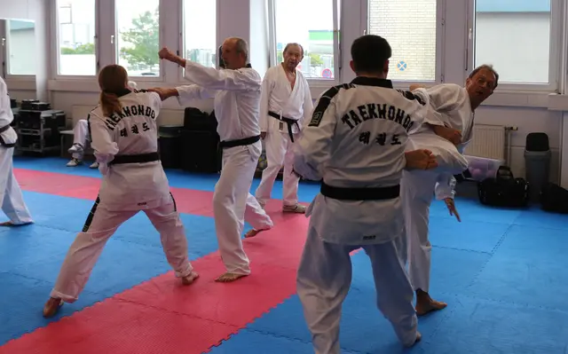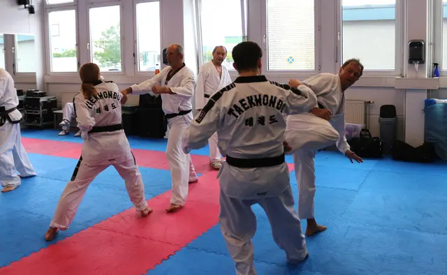 Systemgroßmeister Gerhard Maier besuchte am 23. Juni 2017 auf Einladung von Frank Stave (3. Dan, verantwortlich für den TWIN-Taekwondo-Standort Welden und Trainer der TWIN-Taekwondo-Gruppe Neusäß-Westheim) den TWIN-Taekwondo-Standort Welden. Noch vor Beginn des allgemeinen Lehrgangs konnten die Fortgeschrittenen und Meister einige kombinierte Hosinsul-Techniken (Grifftechniken zur Selbstverteidigung) unter Anleitung trainieren, eine besondere Spezialität von Gerhard Maier. Vierzig Teilnehmer...