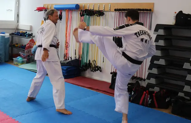 Schon lange hatte ich vor meine Freunde in Augsburg zu besuchen, um gemeinsam zu trainieren. Da das GRAND- / MASTER Training: Schwarz- und Braungurte immer montags um 15:00 Uhr beginnt und 16:30 Uhr endet habe ich es zeitlich nicht geschafft.  Nach einigen Anläufen hat es dann endlich geklappt. Drei meiner Schüler des TSV Rain Abt. Taekwondo haben mich begleitet. Das Training fand in Trainingscenter 1 FITNESS WORLD in der Brixener Straße 8, in Augsburg statt. Nach der freudigen Wiedersehens...
