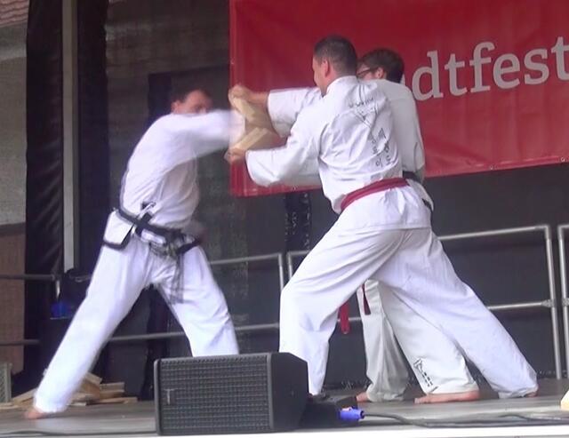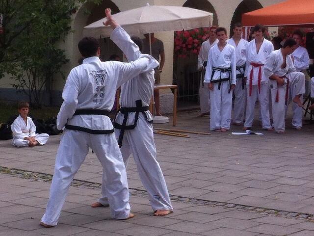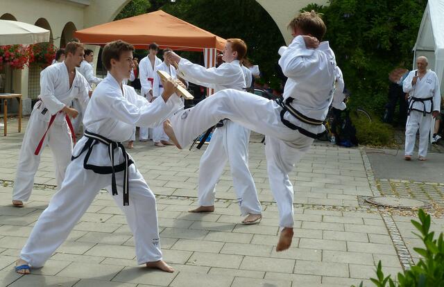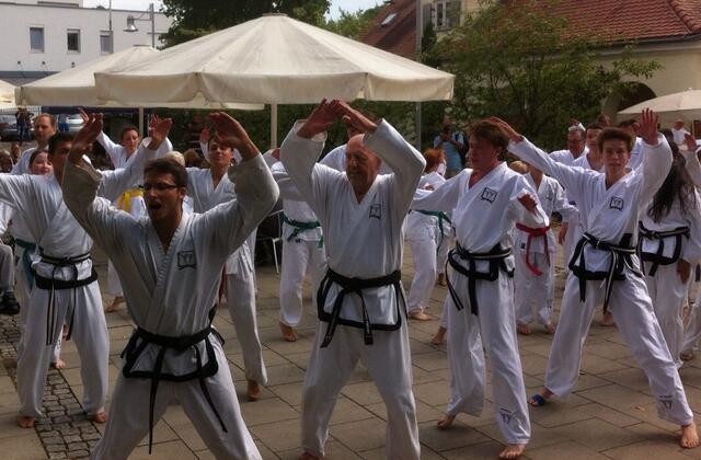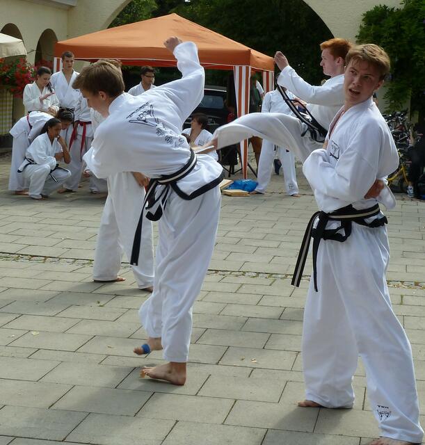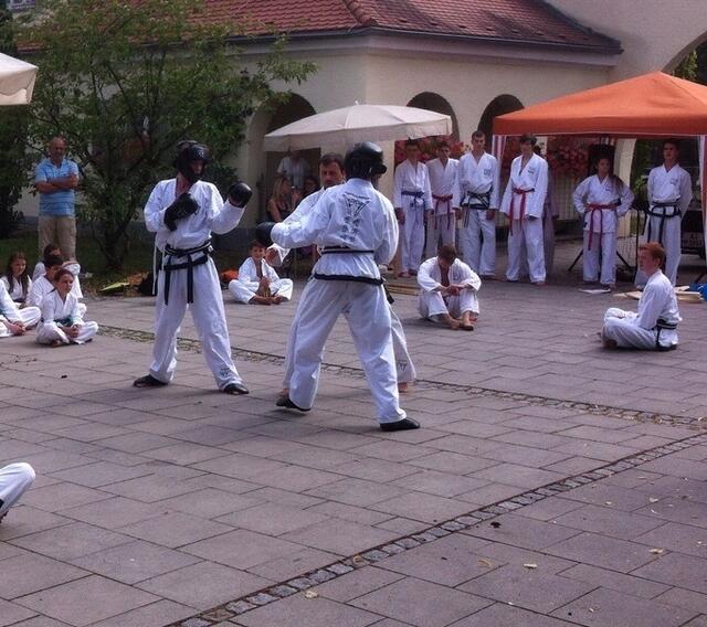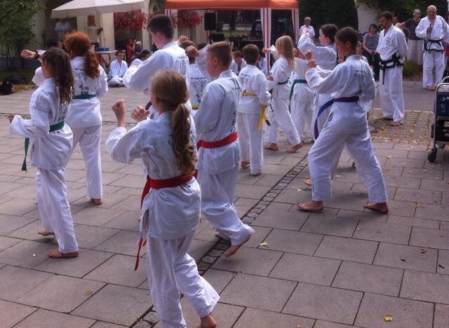 Vorführung von TwinTaekwondo Welden auf dem Marktfest in Welden am 14. August 2016