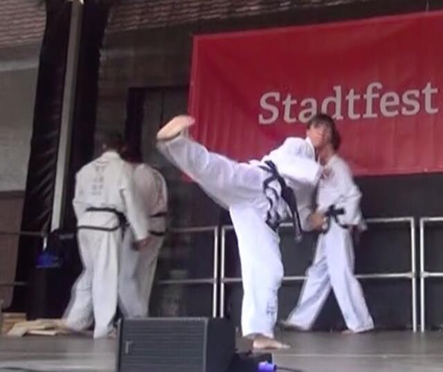 Vorführung der TwinTaekwondo-Gruppe Neusäß-Westheim auf den Neusäßer Stadtfest am 4. Juli 2015