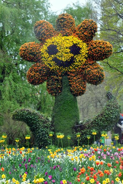Sie lacht einem an, die große Blumen, wenn man vom Parkplatz aus die Mainau betritt