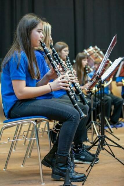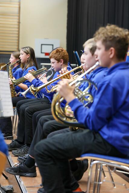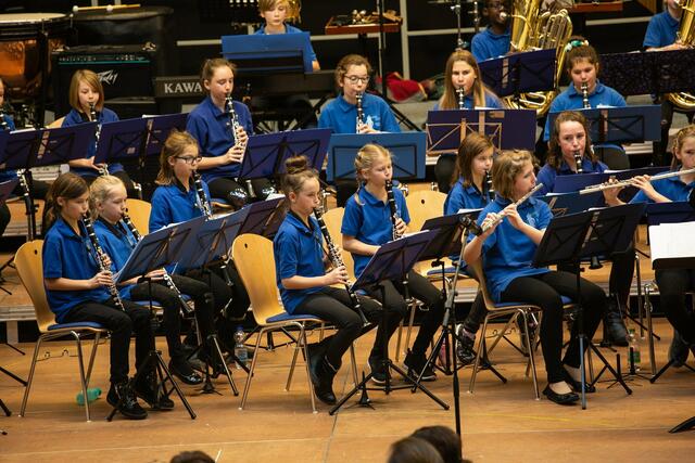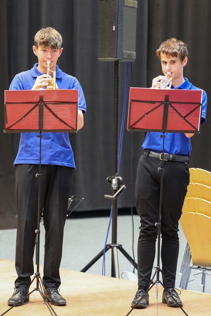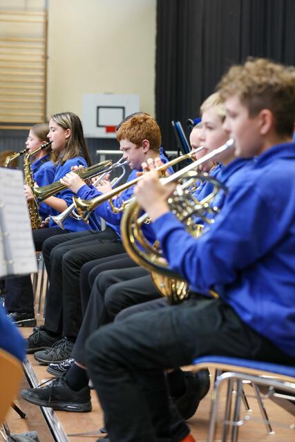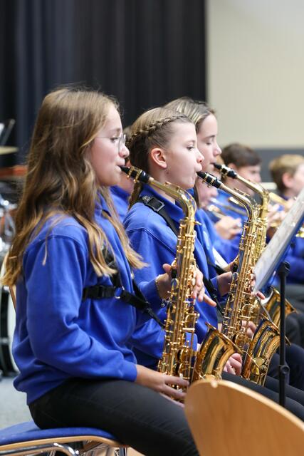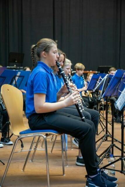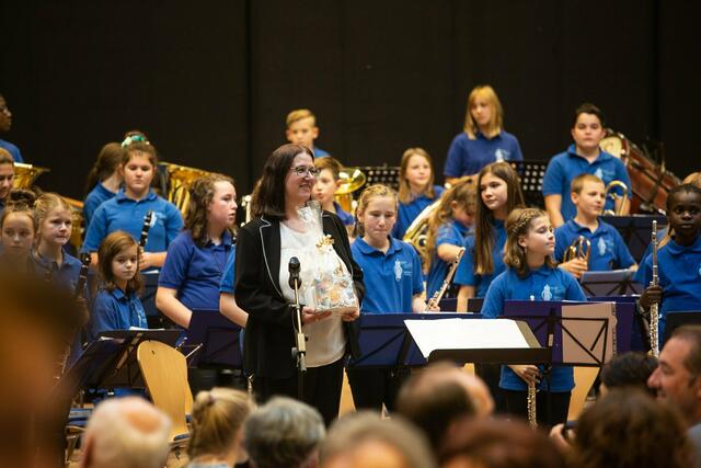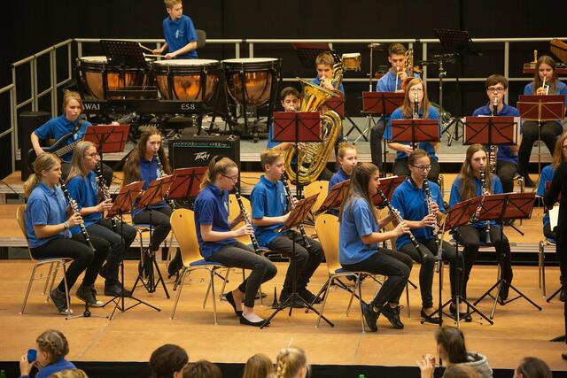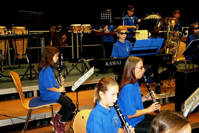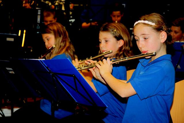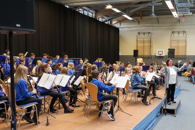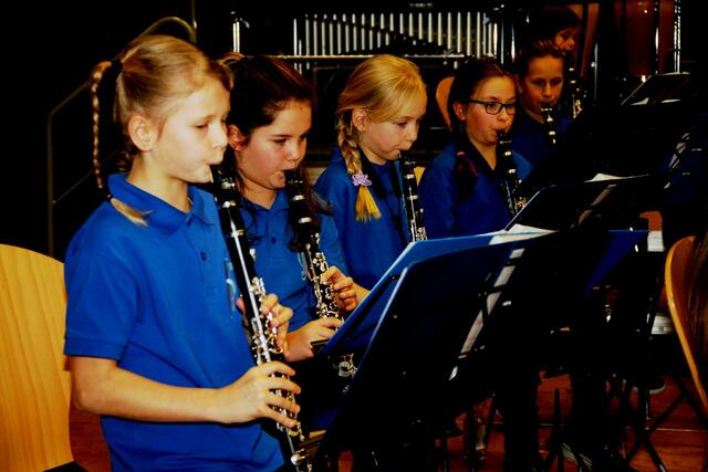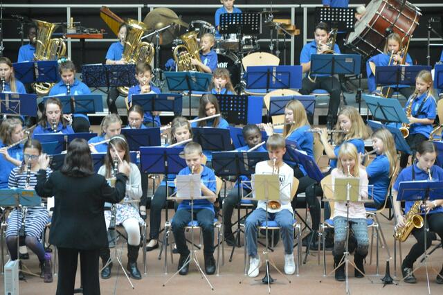 Die Musikerinnen und Musiker aus dem Vororchester und der Bläserklasse meisterten ihren ersten großen Auftritt, unter der Leitung von Karolina Wörle, mit Bravour.