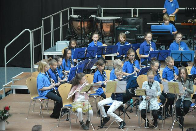 Das Vororchester der Stadtkapelle Wertingen unter der Leitung von Karolina Wörle spielte begeisternd auf.