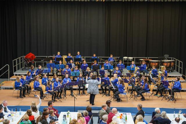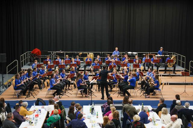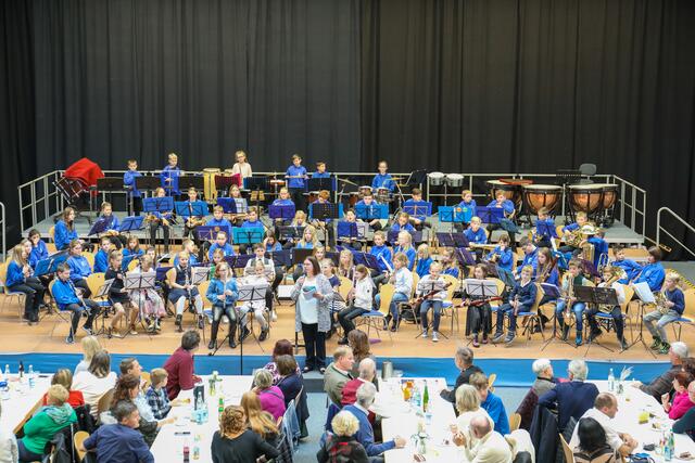 Das Vororchester unter der Leitung von Karolina Wörle eröffnete den Konzertnachmittag. Die Jüngsten der Stadtkapelle Wertingen überzeugten mit großer Spielfreude und begeisterten das Publikum.