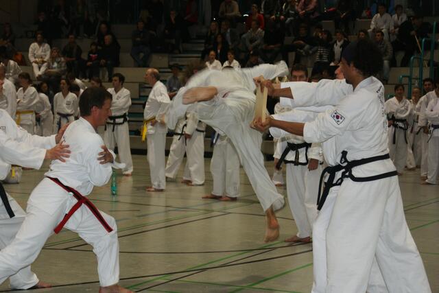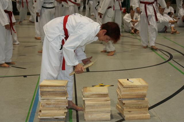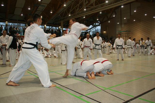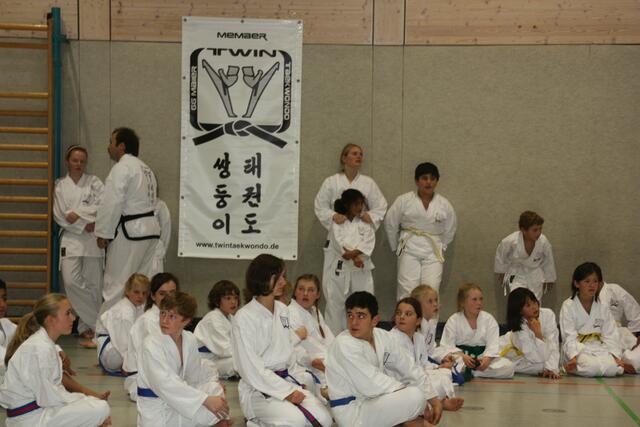Sonntagvormittag folgten 25 Donauwörther Schüler mit deren Familien Ihrem Meister Riza Günaydin in die TWIN Zentrale Augsburg auf einen Besuch zum Großmeister Gerhard Maier. Nach einer aufregenden Aufwärmphase mit verschiedenen Stretch- und Partnerübungen in Folge mit Hand und Fußbewegungen standen einige Schüler zur Prüfung bevor. Dabei erreichten acht Donauwörther die nächste Gürtelstufe mit sehr überzeugender Leistung im Bereich Formenlauf, Bruchtest und Freikampf. Anja Haase, Luke Daniel...
