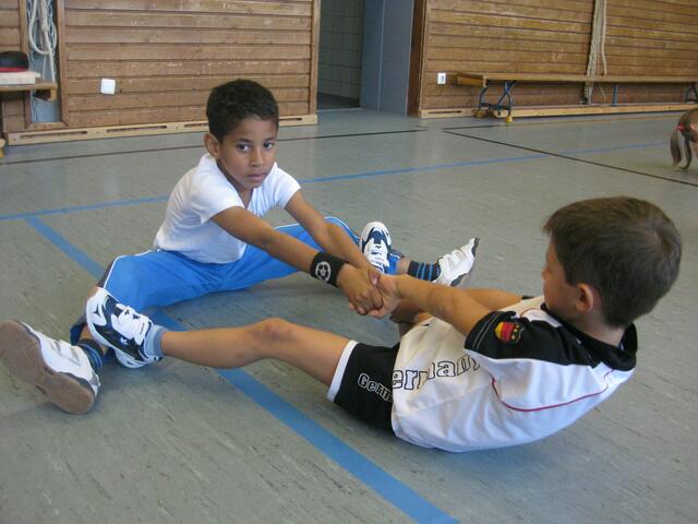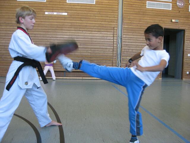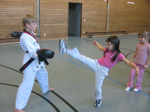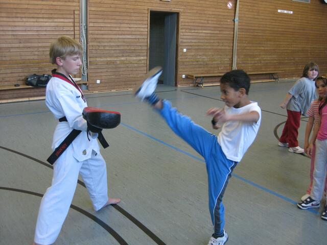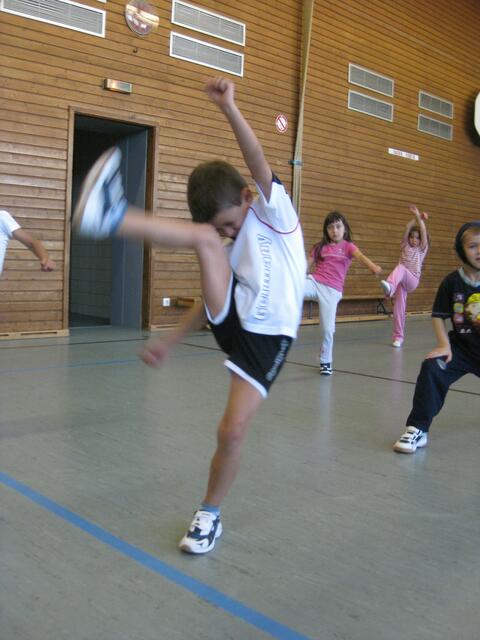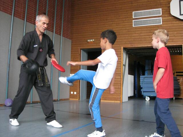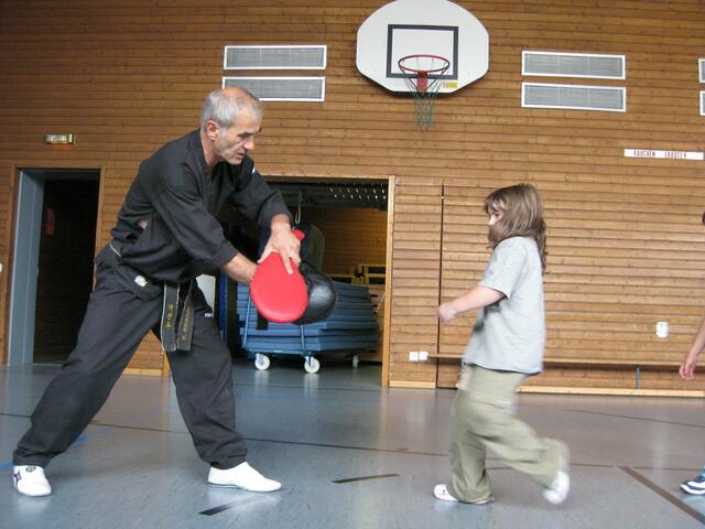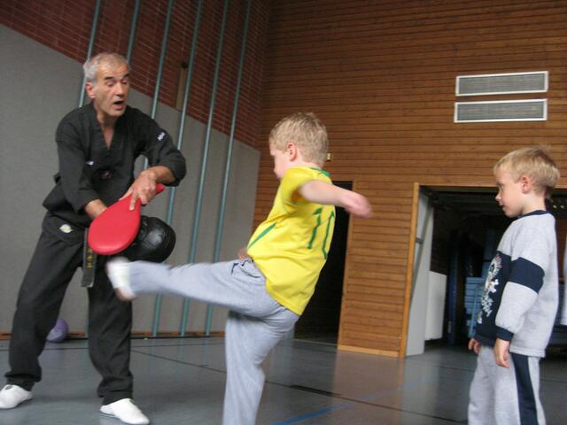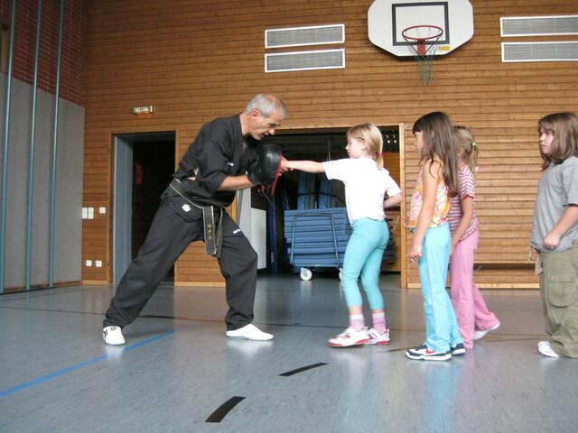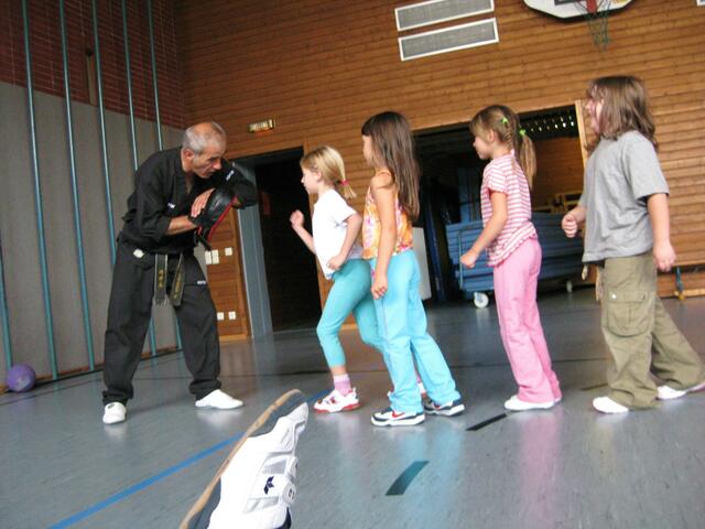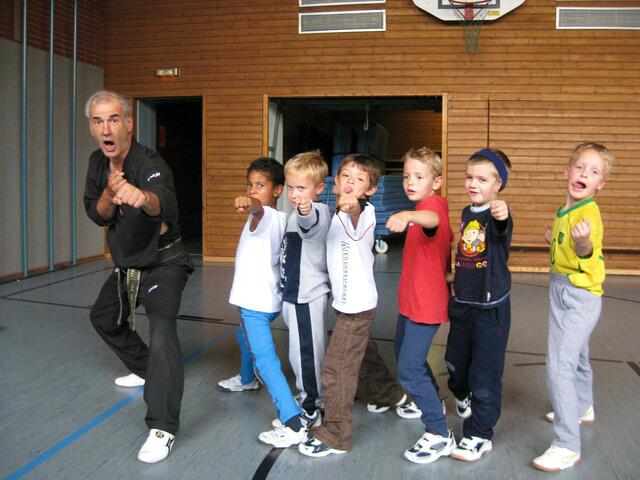 Beim Kampfsport lernen die Kinder Körperbeherrschung, Schnelligkeit, aber auch sehen und zuhören. In Rain in der Johannes-Bayer-Volksschule habe ich an sechs Tagen einmal die Woche Unterricht in Sachen Kampfsport gegeben. Die 11 Kinder im Alter von 6 und 7 Jahren waren mit Begeisterung bei der Sache. Assistiert haben mir zwei meiner Schwarzgurt-Schüler Genrich Krets und Stefan Egner, beide 1. Dan und 12 Jahre alt. Ich musste die Kinder vom Klassenzimmer abholen und in die Sporthalle bringen, wo...