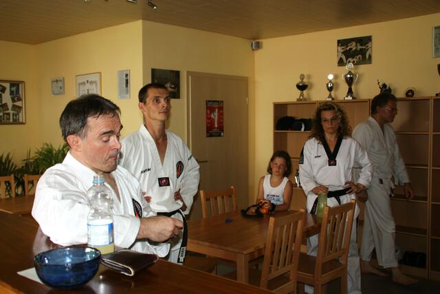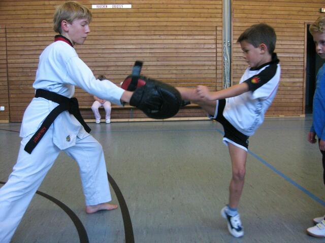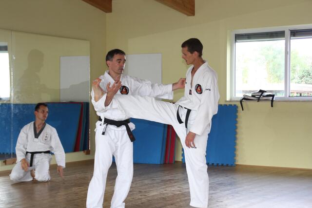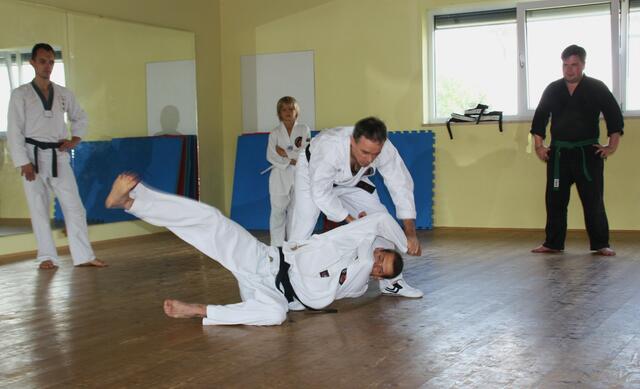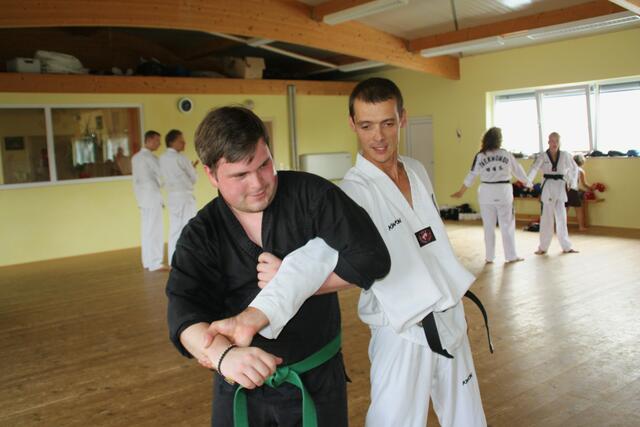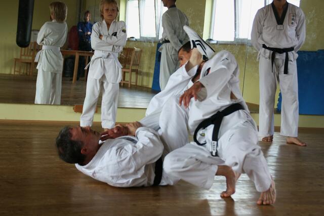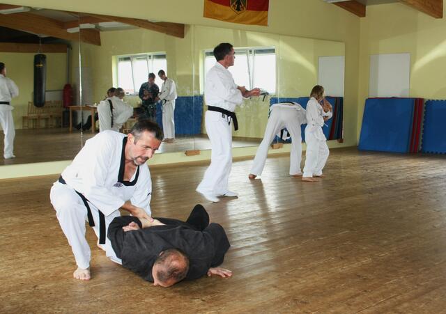 Immer den ersten Freitag im Monat ist Training für Schwarzgurte in Jettingen. Auch ich war am Freitag in Jettingen und habe zwei Schüler mitgenommen, nämlich Bastian Weber (Rain) und Vanessa Müller (Meitingen). Das Training dauert zwei einhalb Stunden. Es beinhaltet eine Stunde Taekwon-Do und ein einhalb Stunden Allkampf-Jitsu. Mein Meister, der Großmeister Jakob Beck 10. Dan Allkampf und 9. Dan Taekwon-Do freut sich immer wenn ich und einige Schüler zum Training vorbei kommen.