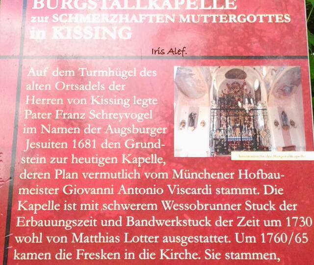 Die Burgstallkapelle Kissing Durch die Landesausstellung 2020 bin ich auf die Burgstallkapelle aufmerksam geworden. Sie ist eine barocke Wallfahrtskapelle, die im 17. Jahrhundert auf einem Hügel erbaut worden ist. Es führt eine mächtige Treppe hinauf. Für uns leider in Coronazeiten geschlossen, was ich besonders schade finde. Wenn ihr mehr darüber wissen wollt, bitte in Wikipedia nachlesen.