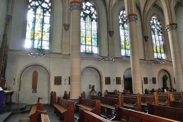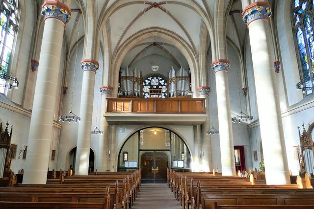 Blick zum heutigen Haupteingang und zur Orgel im Westen.