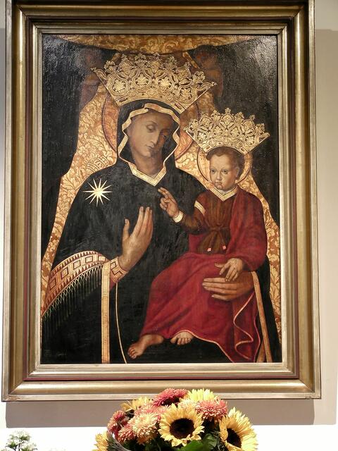 ... Gleich neben dem Eingang zum KLOSTER geht es rechts auf einem mit  bunten Blumen gesäumten Weg diagonal durch den schönen kleinen Kirchgarten direkt zur Kirche... Geöffnet war sie nicht, so daß ich leider keine Fotos vom Innenraum zeigen kann...