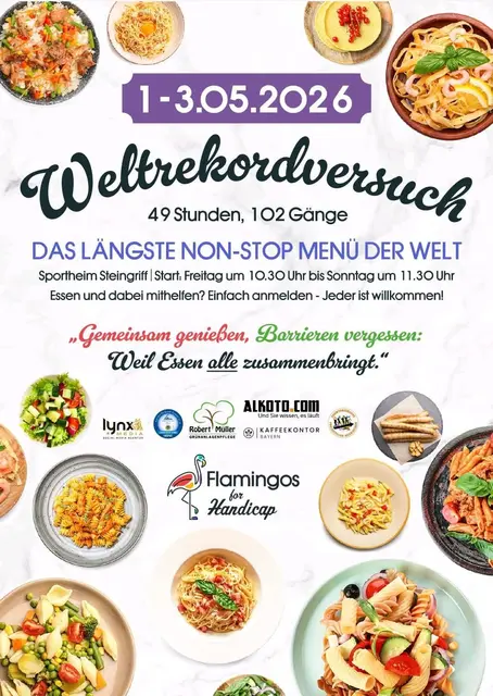 Das längste non-Stop-Menü der Welt - Fränkisch-Bayrisch* Wir planen, am 01.05.2026 einen Weltrekord aufzustellen! Unser Ziel ist es, das längste non-Stop-Menü der Welt zu servieren, das 102 Gänge umfasst und 49 Stunden am Stück dauert. Alle halbe Stunde wird ein neuer Gang serviert, um die Gäste auf eine kulinarische Reise durch Franken und Bayern zu entführen. *Das Konzept* Unser Menü wird eine Vielzahl von traditionellen fränkischen und bayrischen Gerichten umfassen, die von unseren...