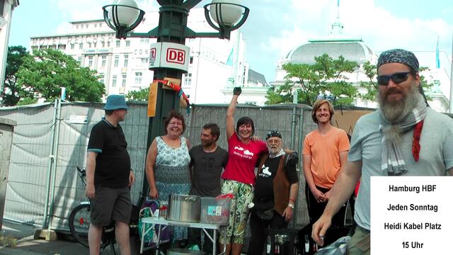 Wer die Essensausgabe am Hamburger Hauptbahnhof mit einer Wasserlieferung unterstützen möchte (auch Kleinstmengen sind willkommen), kommt gerne am Sonntag, den 11.8. und 18.8. um jeweils 15 Uhr zum Heidi Kabel Platz 1 (Hamburg Hauptbahnhof - Ausgang Kirchenallee). Dort werden die Kollegen von "Hamburg is(s)t gut" wieder einen Essensstand zur Versorgung der dort ansässigen Obdachlosen aufgebaut haben und mit Eurer Hilfe könnten wir auch Getränke verteilen, so wie am 28.7. schon. Rückblick:...