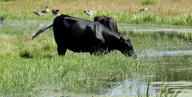 Bei einer Fotoexkursion zu den Stapelteichen in Vörie (OT Ronnenberg), die ich gestern mit meinen Freunden Reinhold Peisker und Wolfgang Krohn unternommen hatte, ist mir eine nicht alltägliche Szene vor die Linse meiner Kamera gekommen. Eine Elster ließ sich auf dem Rücken eines großen Wasserbüffels nieder, der diese "Frechheit" in stoischer Ruhe und ohne jegliches Zucken über sich ergehen ließ. Das Bild erinnerte mich an afrikanische Büffel, die sich von Madenhackern ihr Fell von Parasiten...