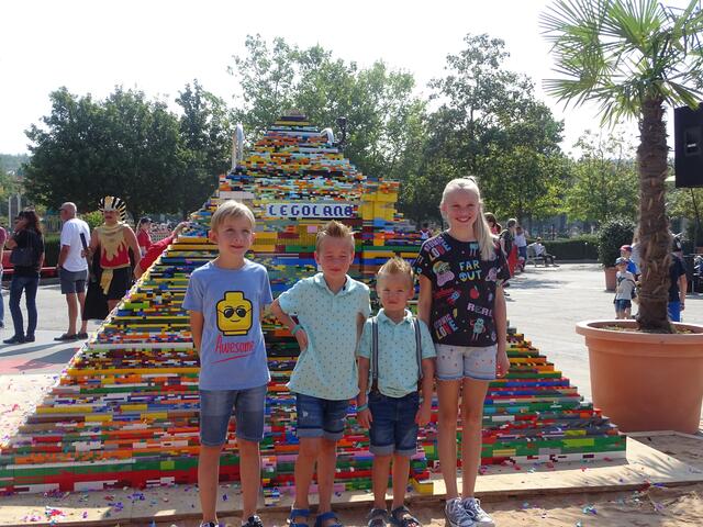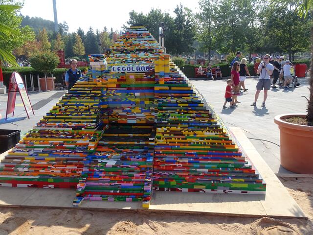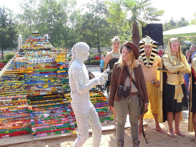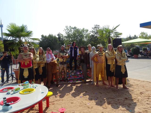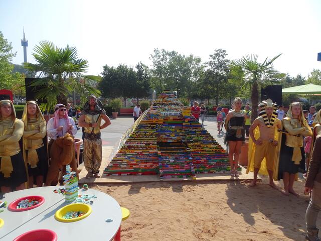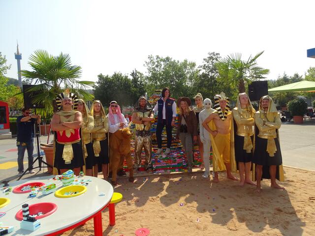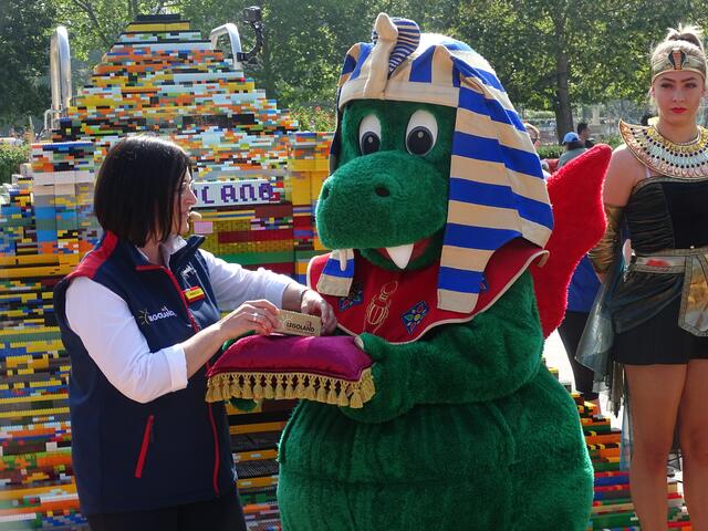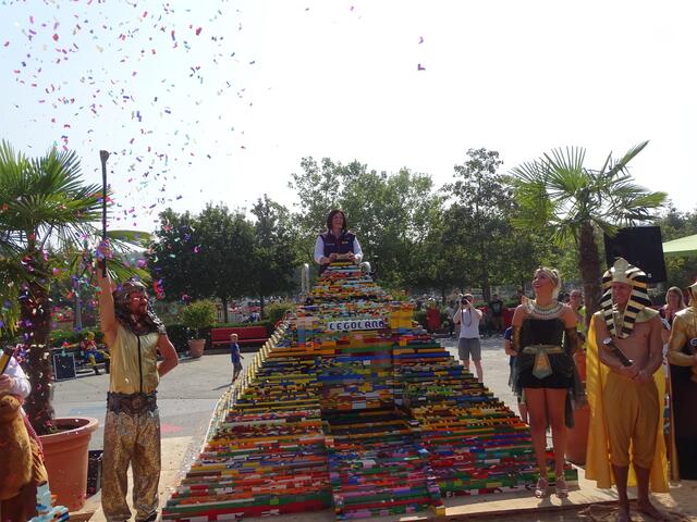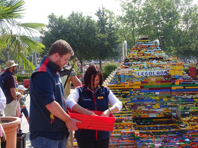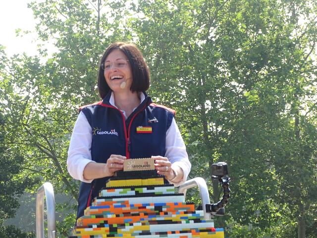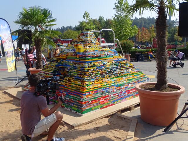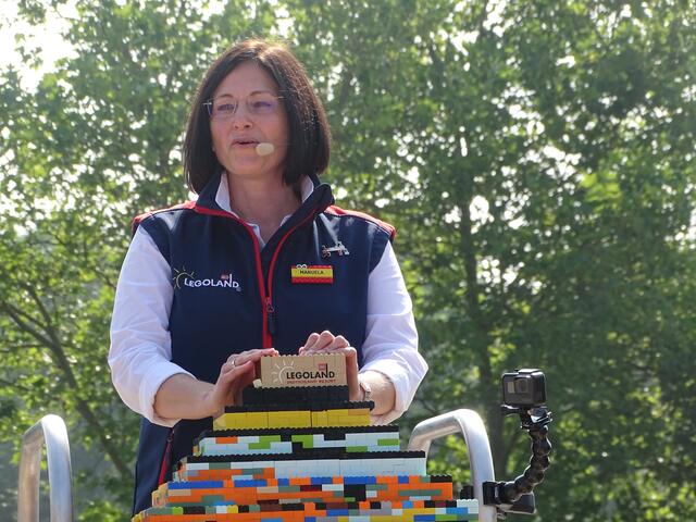 Legoland Chefin Manuela Stone setzte den finalen Stein auf die größte  Lego Pyramide der Welt. 8 000 Familien hatten an dieser Pyramide mitgearbeitet