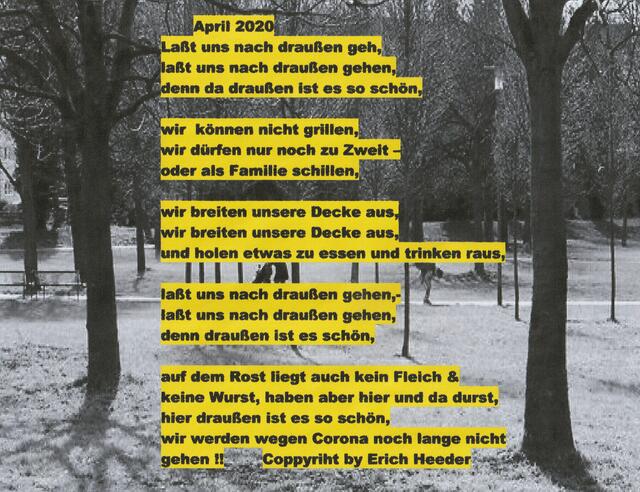 Wir, eine Gruppe von Künstlern, gestalten am 14. August 2016 eine Ausstellung im Freien, in einem öffentlichen Stadtgarten in Pattensen. Der Garten heißt: Fuchsbachpark und liegt hinter dem Pflegewohnstift CMS Die Adresse: CMS-Wohnheim, Koldinger Str. 13A, 30982 Pattensen Zu sehen sind Skulpturen aus Stein, Ton und ähnliche Materialien, Bilder und im Wechsel ist auch für die Ohren mit zwei Lesungen gesorgt. Sollte es wiedererwarten schlechtes Wetter geben, verlegen wir die Veranstaltung in das...
