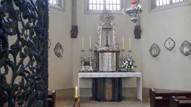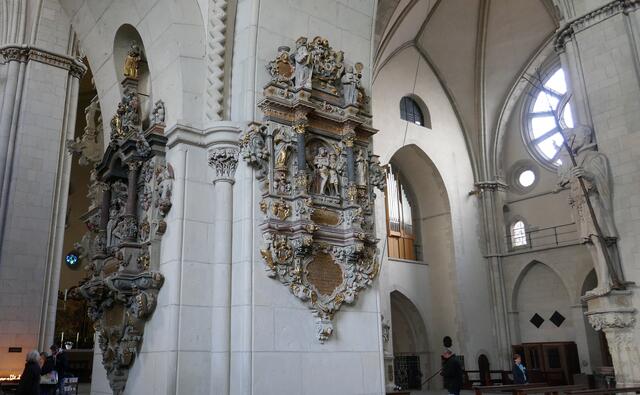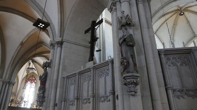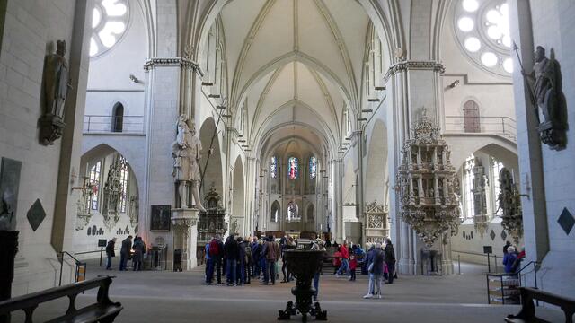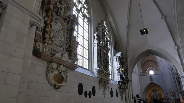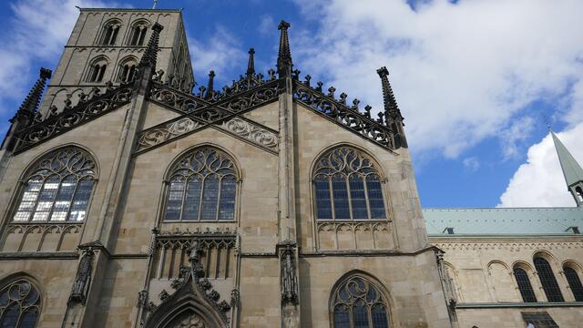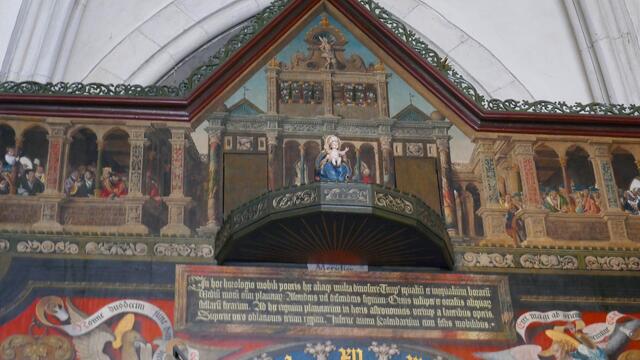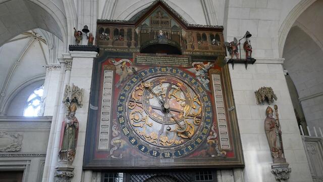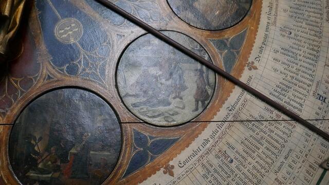 Die astronomische Uhr ist nicht nur ein technisches Meisterwerk. Auch Malerei und Schnitzwerk sind hohe Kunst. Im Zentrum der Kalenderscheibe steht der Apostel Paulus, der Namenspatron des Doms. Sie hängt an einem ungewöhnlichen Ort, fast versteckt im Chor des Doms zu Münster: die astronomische Uhr. 1408 wurde sie gefertigt, während des Bildersturms 1534 zerstört und wenige Jahre später erneuert. Neben der Uhrzeit – der Stundenzeiger läuft erstaunlicherweise linksherum – zeigt sie Mondphasen...