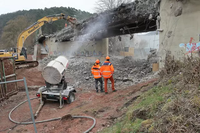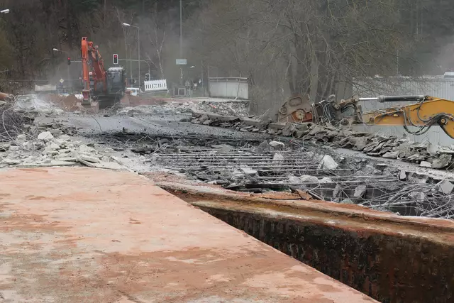 Stark beschädigte Brücke in Marburg kurz vor dem Einsturz